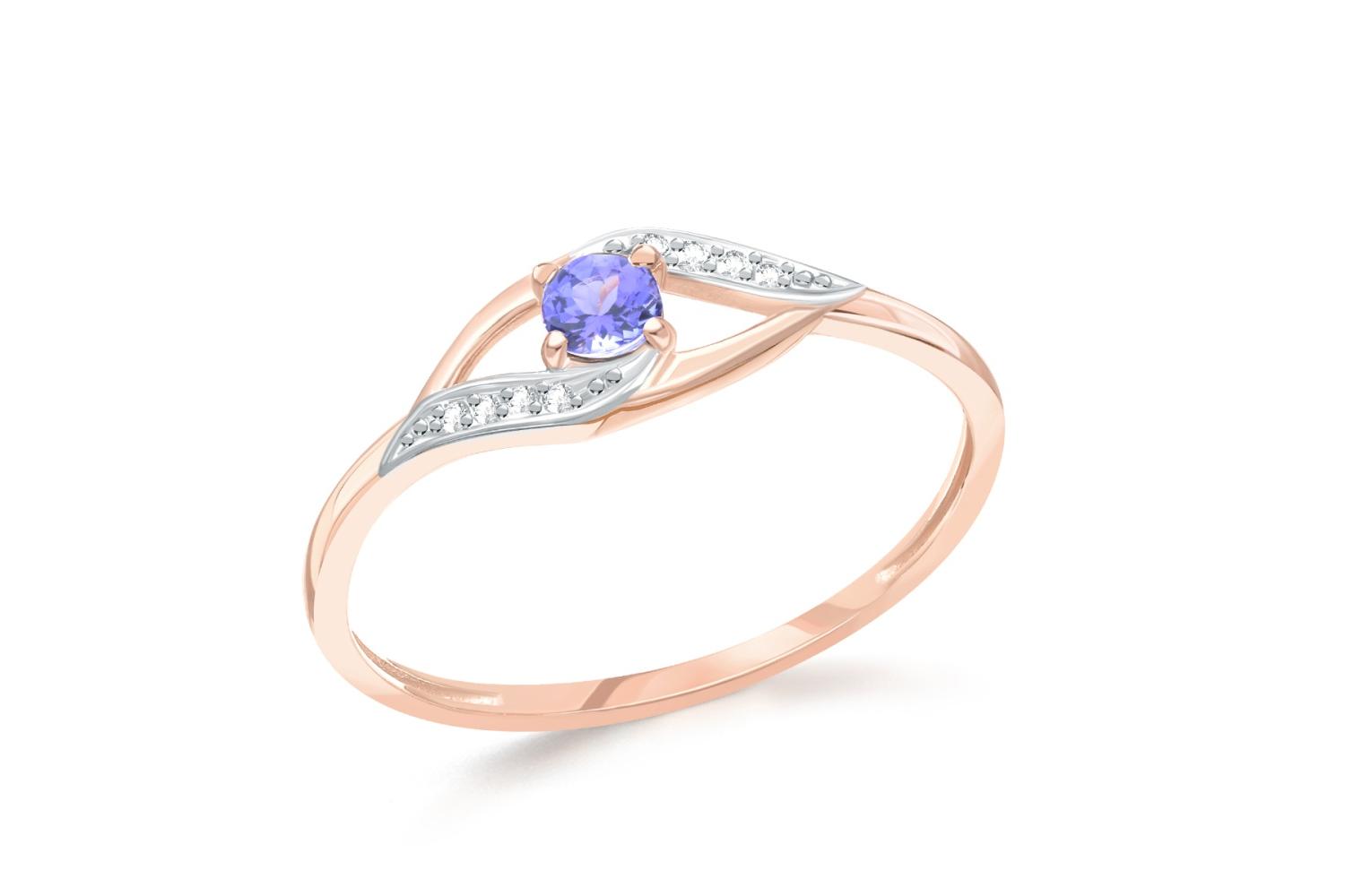 Закажите Кольцо из красного золота с танзанитом и 8 фианитами с получением в Москве через курьерскую службу доставки напрямую с нашего производственного склада завода NEWGOLD!