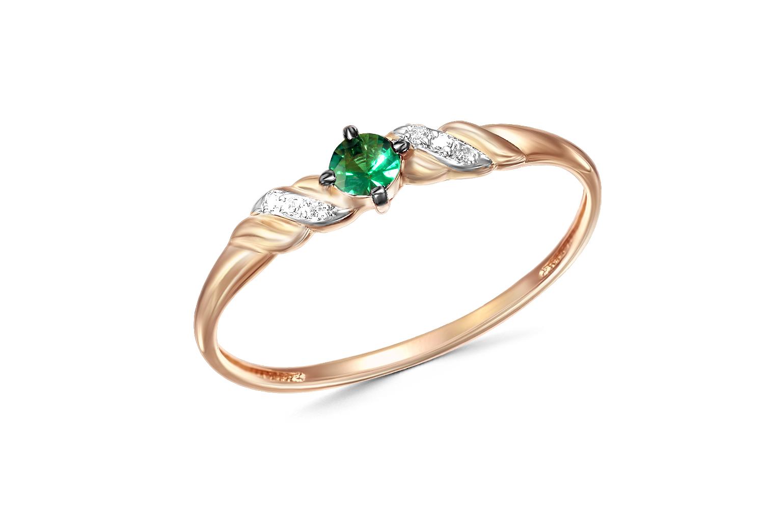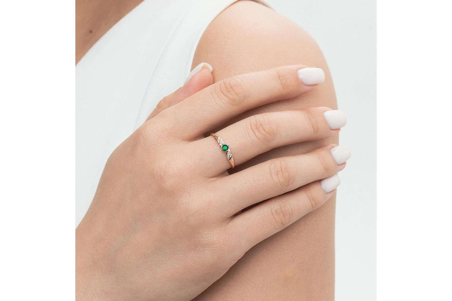 Изящное кольцо, выполненное из красного золота, притягивает взгляд своей элегантной композицией. В центре - яркий изумруд насыщенного зеленого оттенка.