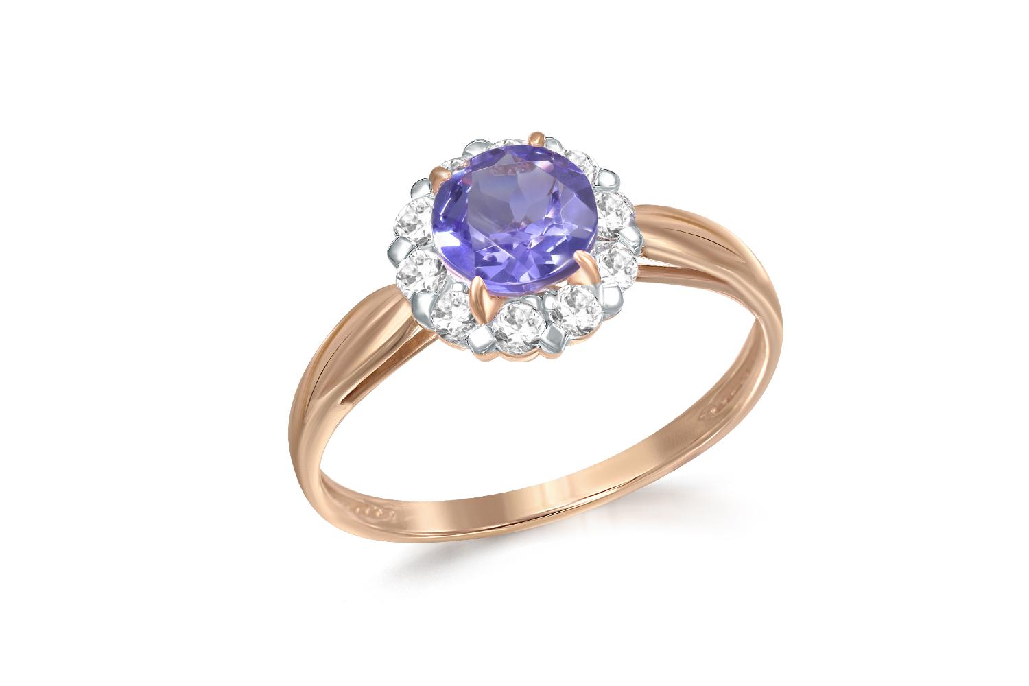 Мастера компании NEWGOLD, приложив всё свое мастерство и искусство, создали для Вас на нашем собственном производстве Кольцо из красного золота с ситаллом и 10 фианитами.