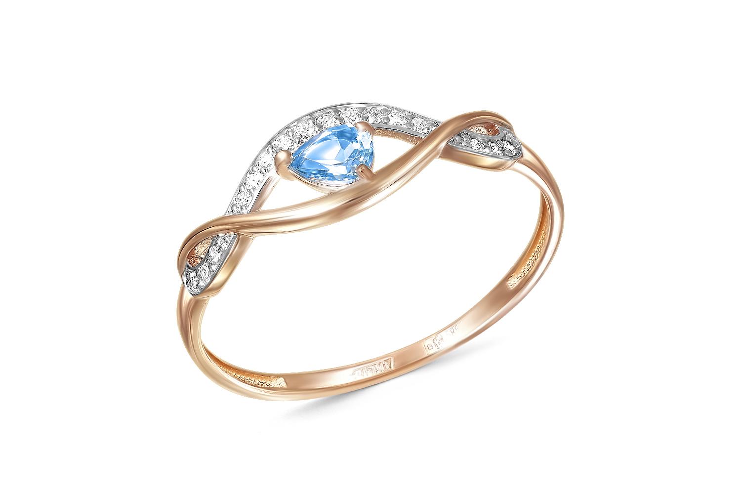 Мастера компании NEWGOLD, приложив всё свое мастерство и искусство, создали для Вас на нашем собственном производстве Кольцо из красного золота с топазом swiss и 16 фианитами.