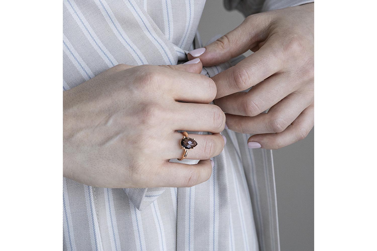 Закажите Кольцо из красного золота с раухтопазом с получением в Москве через курьерскую службу доставки напрямую с нашего производственного склада завода NEWGOLD!