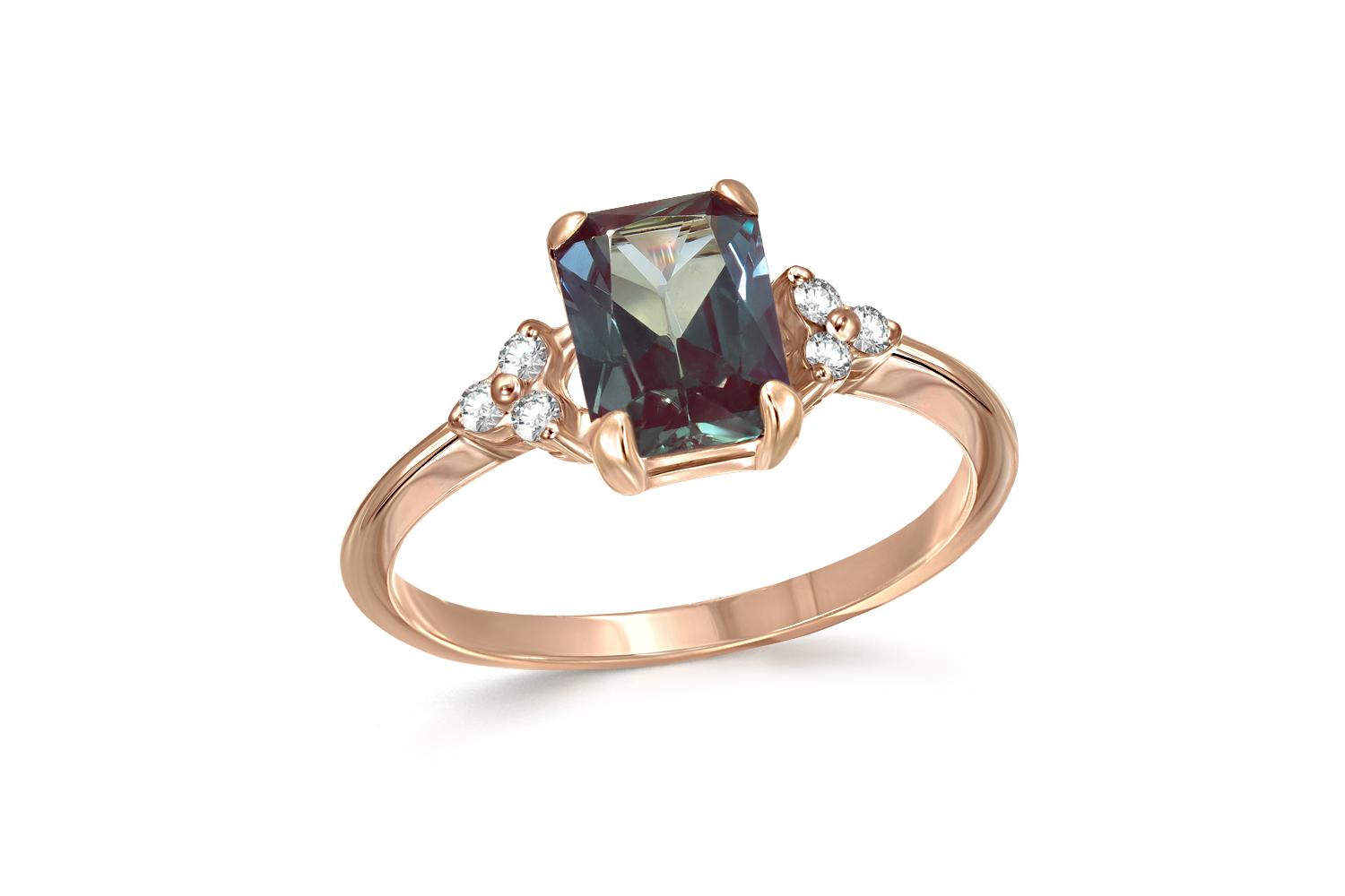 Мастера компании NEWGOLD, приложив всё свое мастерство и искусство, создали для Вас на нашем собственном производстве Кольцо из красного золота с александритом и 6 фианитами.
