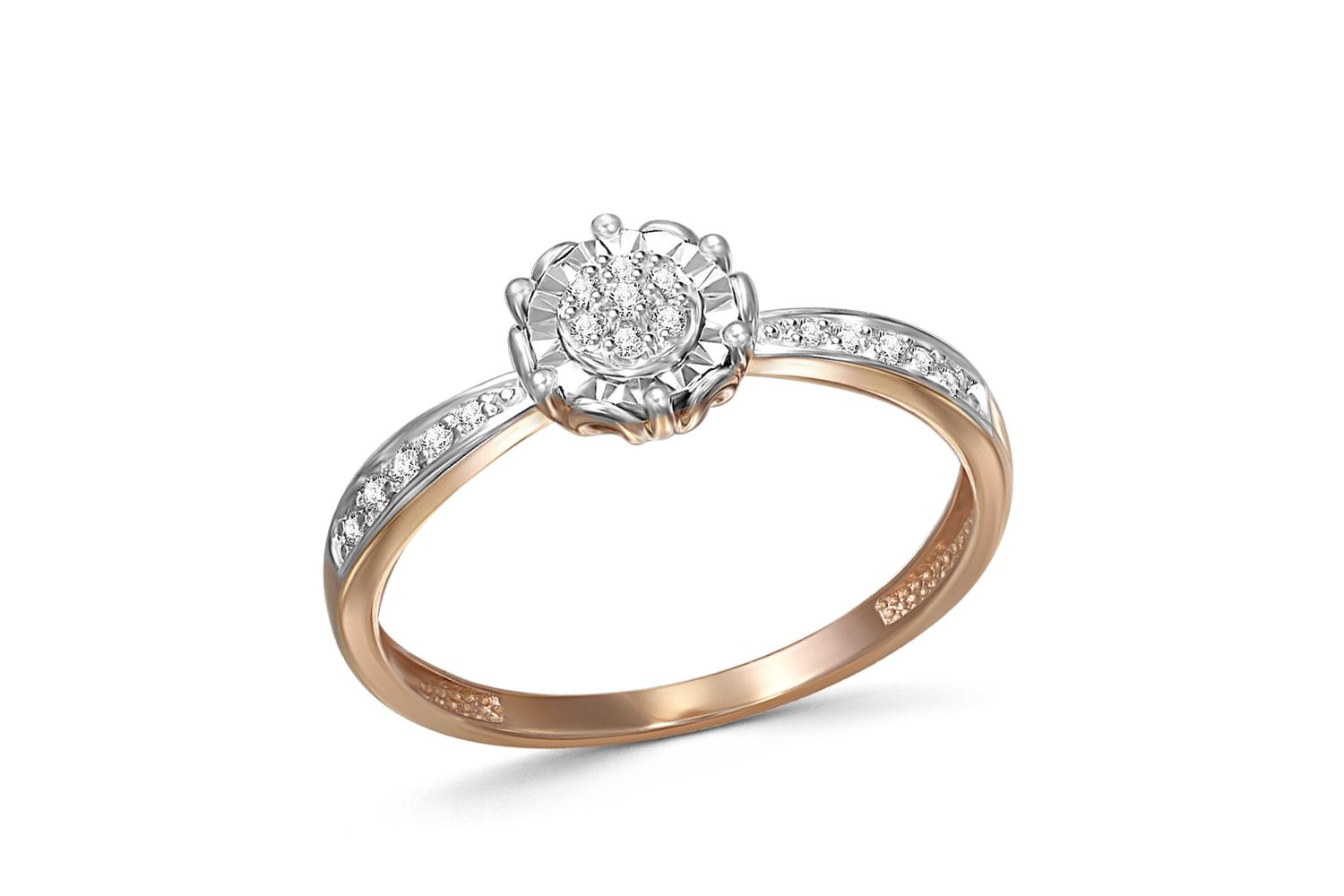 Закажите Кольцо Цветок из красного золота с 17 бриллиантами с получением в Москве через курьерскую службу доставки напрямую с нашего производственного склада завода NEWGOLD!