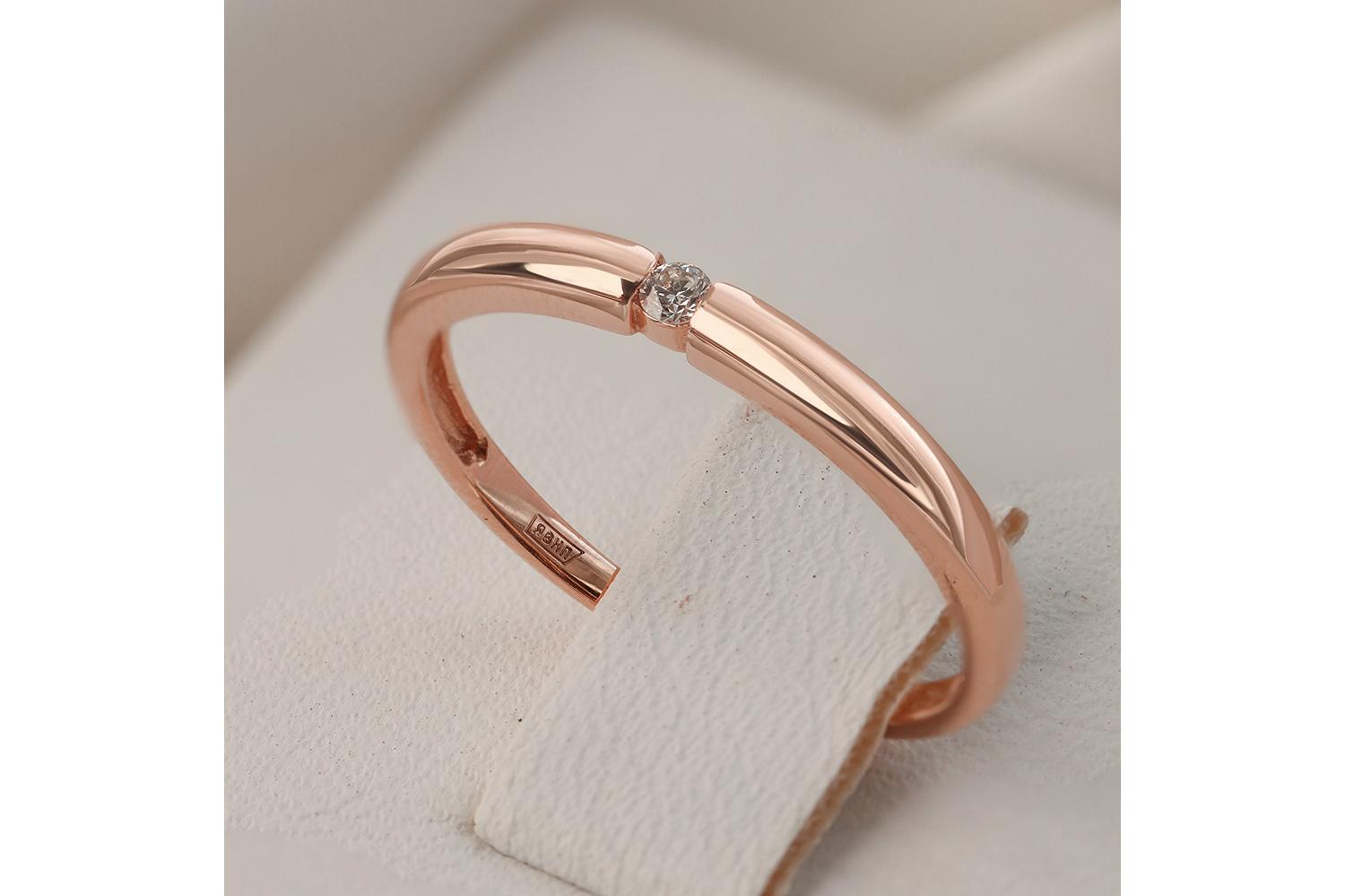 Обручальное кольцо - изысканный символ любви и прочной связи двух сердец. Изготовленное из красного золота, оно обладает неповторимым блеском и элегантностью. В центре колечко украшено бриллиантом, который привлекает взгляд своим ярким сиянием. Каждая деталь продумана до мельчайших нюансов, чтобы подчеркнуть особенность этого свадебного аксессуара.