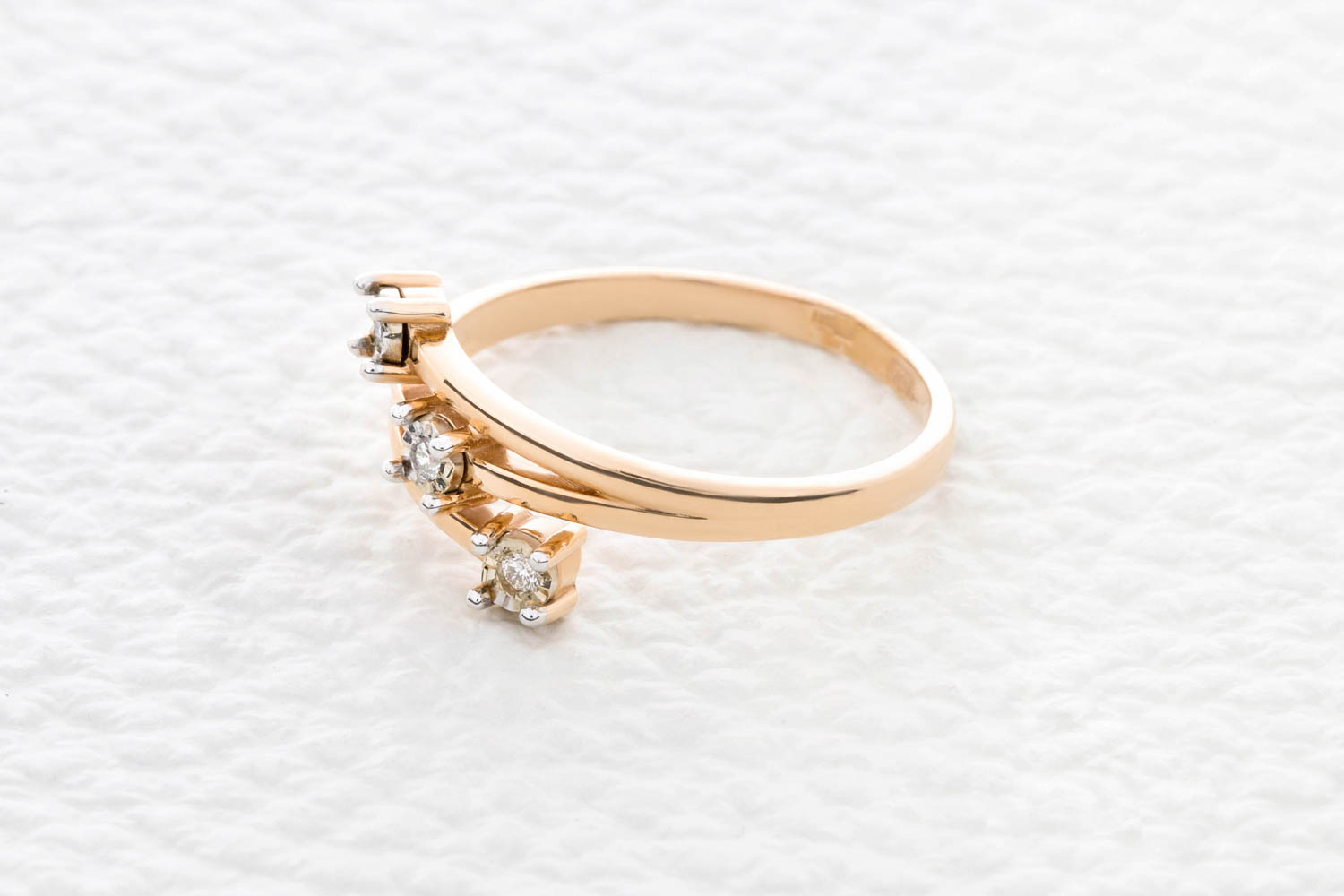 Мастера компании NEWGOLD, приложив всё свое мастерство и искусство, создали для Вас на нашем собственном производстве Обручальное кольцо из красного золота с 3 бриллиантами.