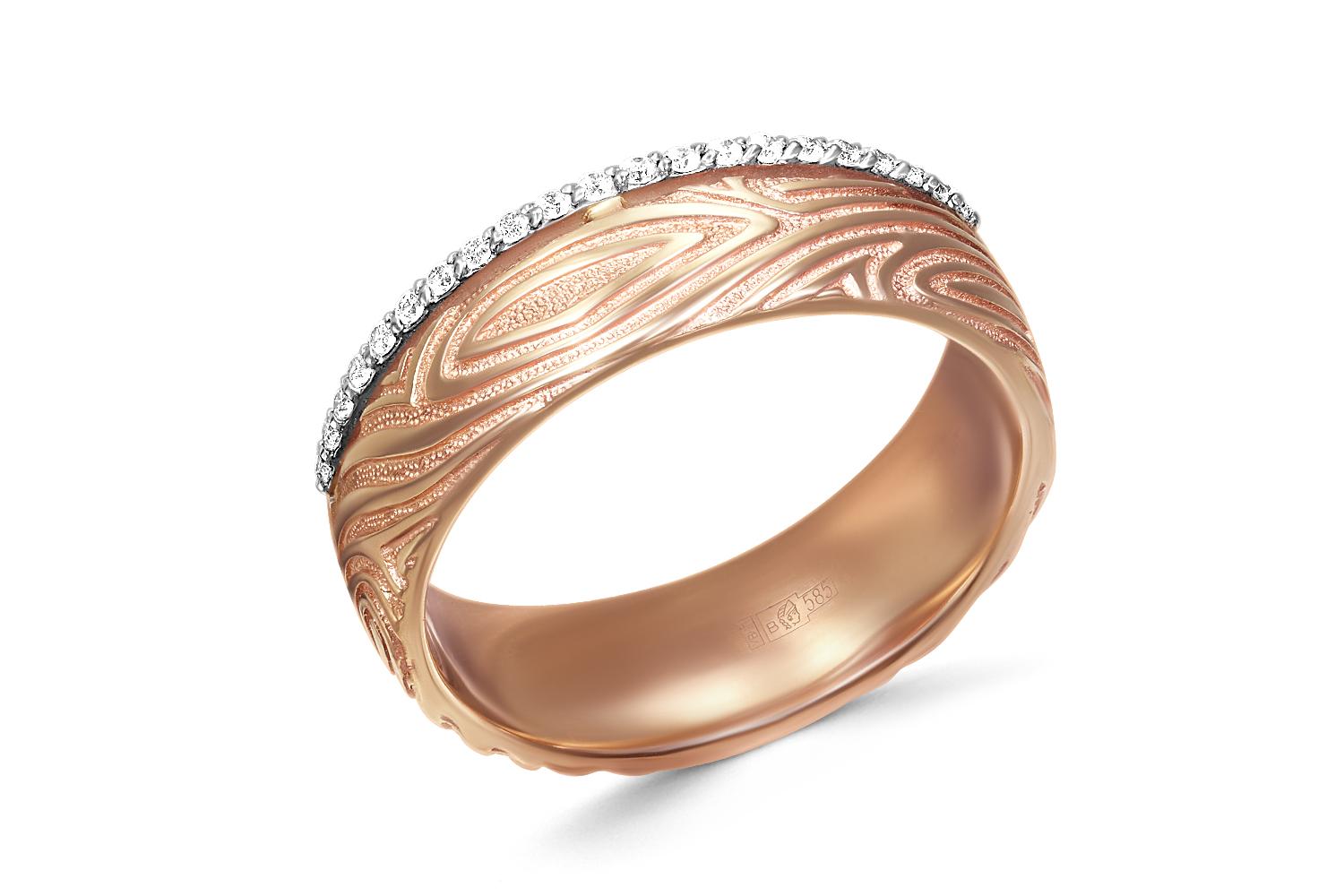 Мастера компании NEWGOLD, приложив всё свое мастерство и искусство, создали для Вас на нашем собственном производстве Обручальное кольцо из красного золота с 21 бриллиантами.