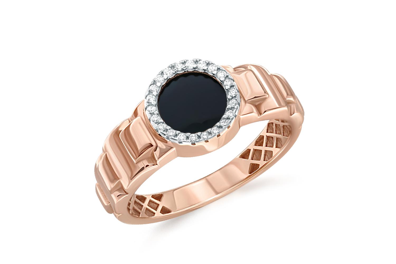 Мастера компании NEWGOLD, приложив всё свое мастерство и искусство, создали для Вас на нашем собственном производстве Печатка из красного золота с ониксом и 22 фианитами.