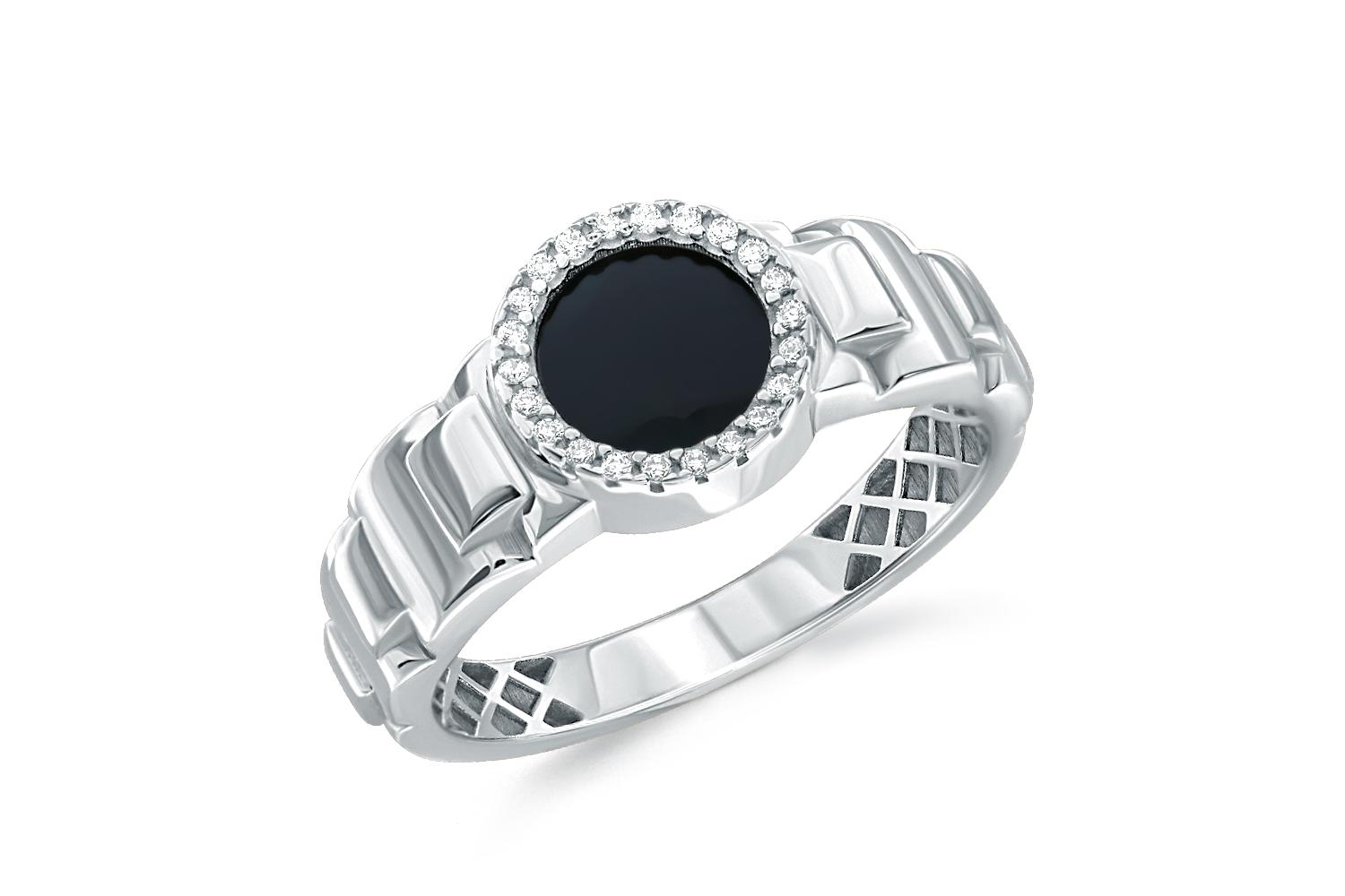 Мастера компании NEWGOLD, приложив всё свое мастерство и искусство, создали для Вас на нашем собственном производстве Печатка из белого золота с ониксом и 22 фианитами.