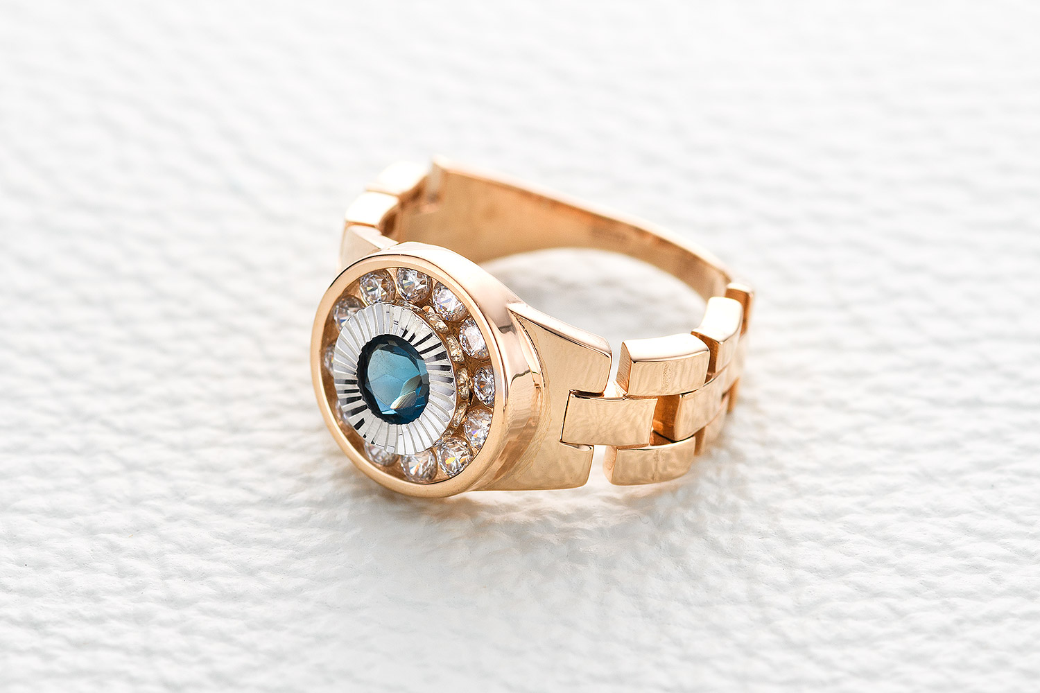 Мастера компании NEWGOLD, приложив всё свое мастерство и искусство, создали для Вас на нашем собственном производстве Печатка из красного золота с топазом лондон и 12 фианитами.