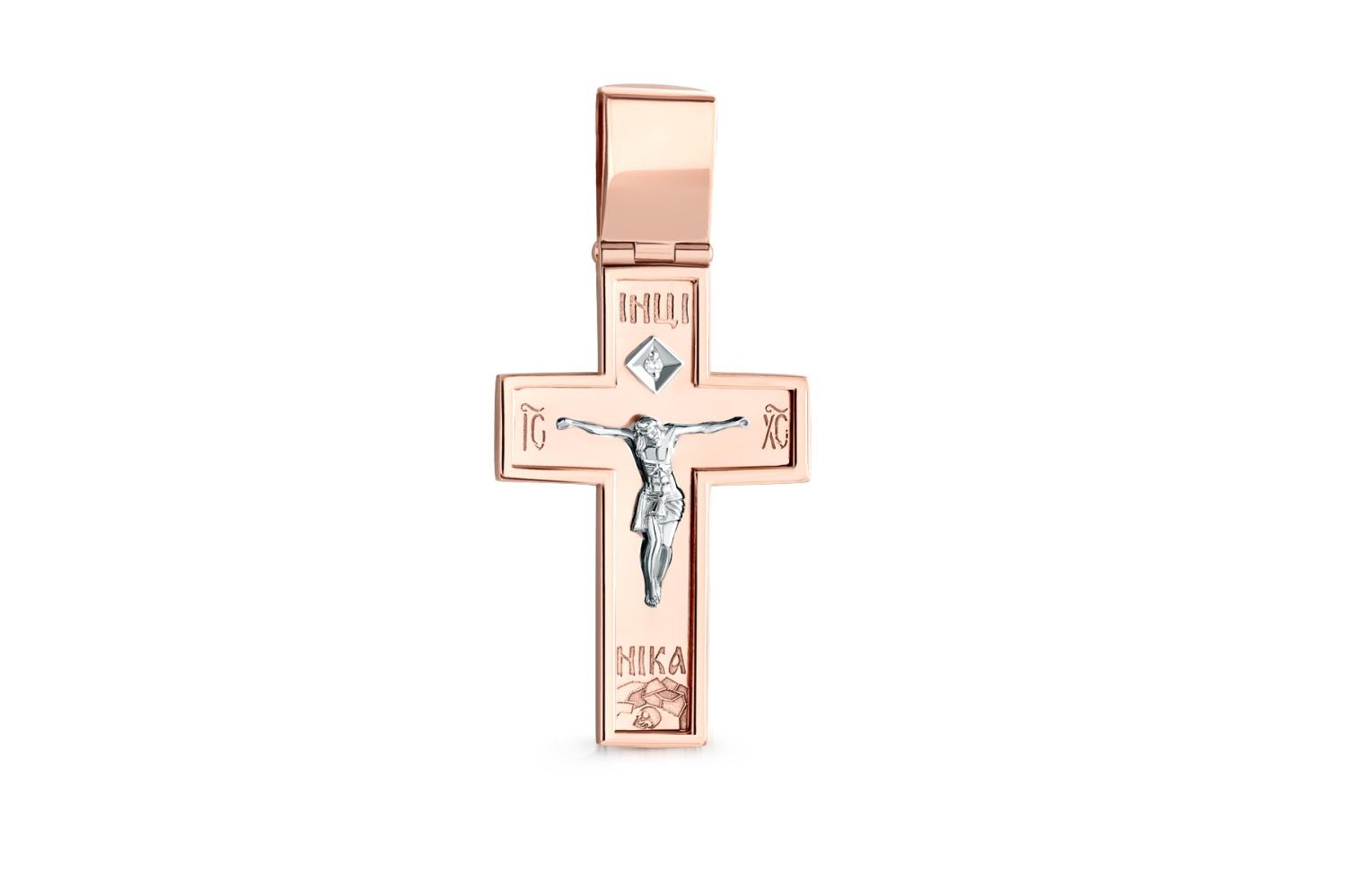Мастера компании NEWGOLD, приложив всё свое мастерство и искусство, создали для Вас на нашем собственном производстве Крест из красного золота с бриллиантом.