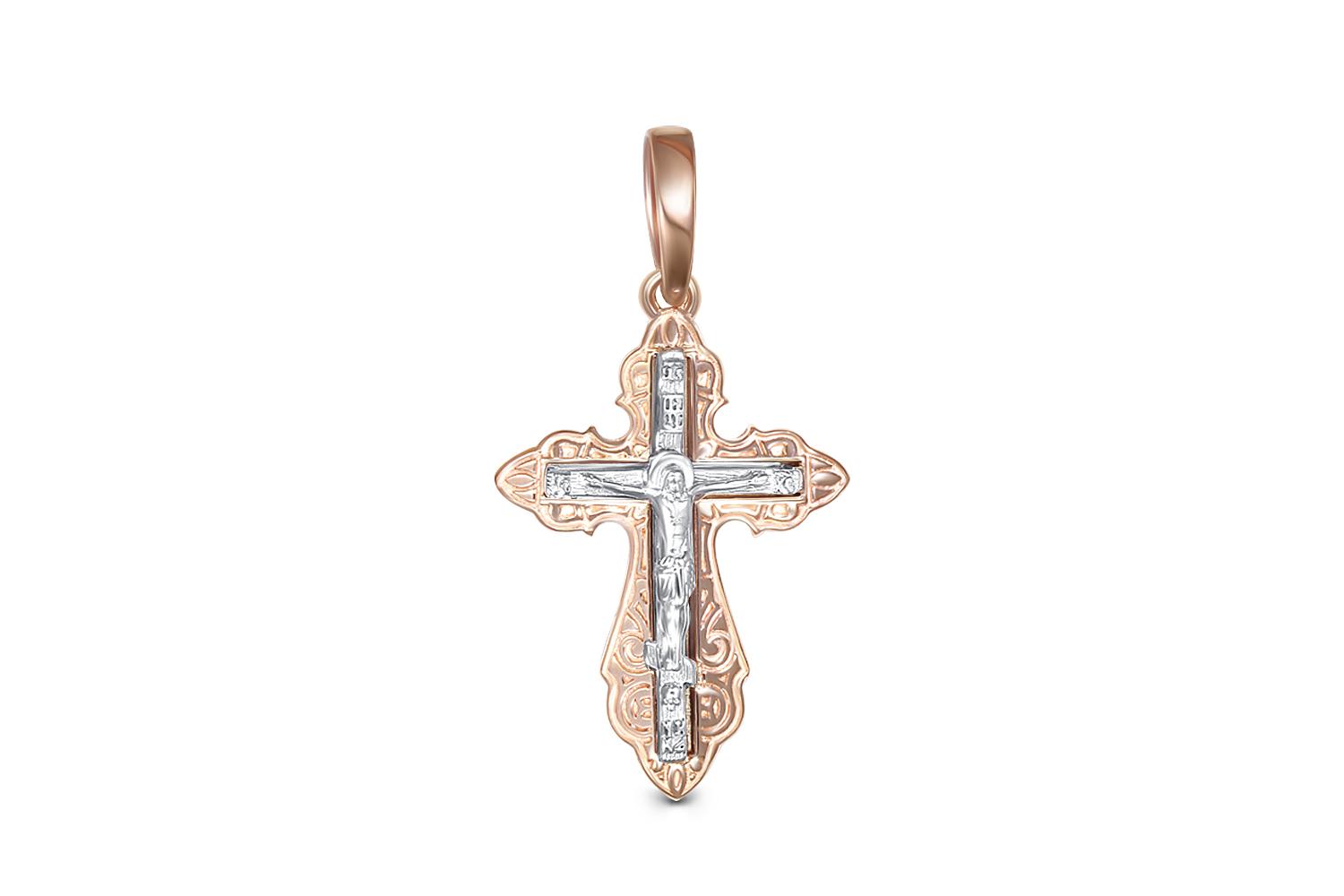 Изготовленный из комбинированного золота красного и белого оттенков, православный золотой крестик имеет высокое качество исполнения. Это делает выбор осознанный и правильный для тех, кто ищет значимое украшение. Золотой крестик женский также станет элегантным аксессуаром для женщин, подчеркивающим их стиль.