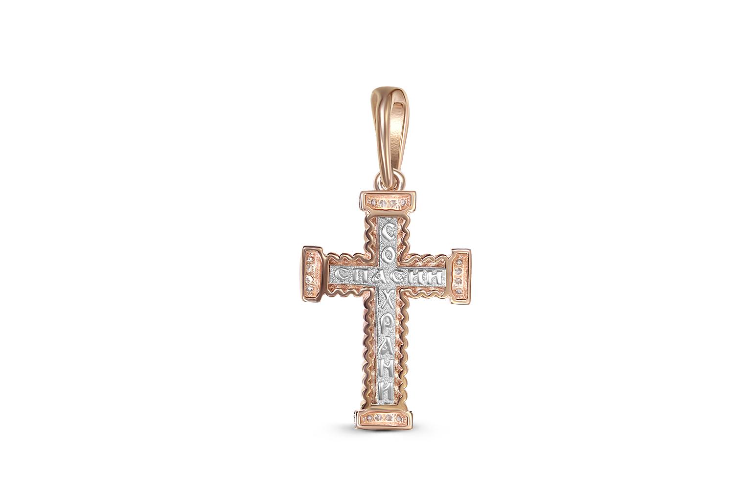 Мастера компании NEWGOLD, приложив всё свое мастерство и искусство, создали для Вас на нашем собственном производстве Крест из красного золота с 20 фианитами.