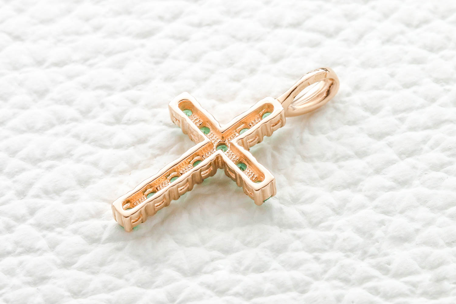 Мастера компании NEWGOLD, приложив всё свое мастерство и искусство, создали для Вас на нашем собственном производстве Крест из красного золота с 11 изумрудами.