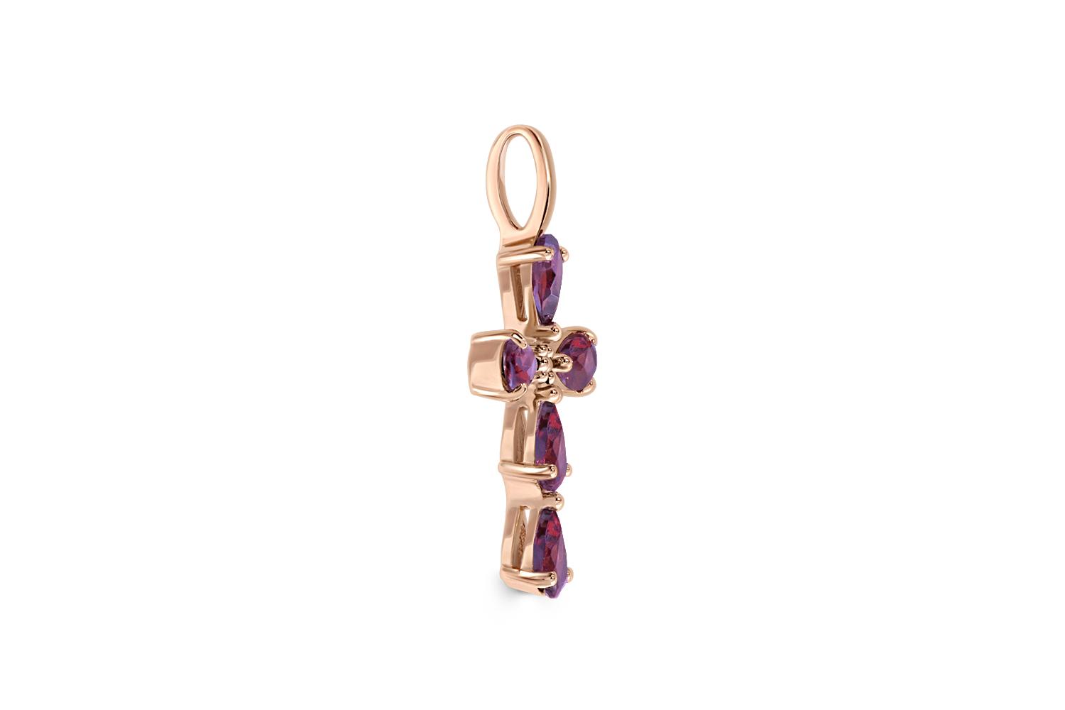 Закажите Крест из красного золота с 6 родолитами с получением в Москве через курьерскую службу доставки напрямую с нашего производственного склада завода NEWGOLD!