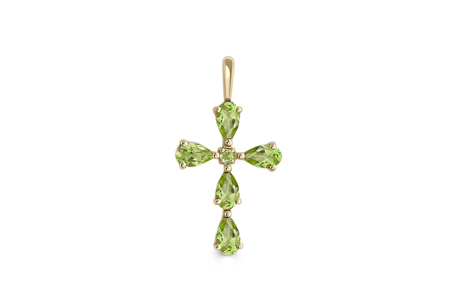 Закажите Крест из жёлтого золота с 6 хризолитами с получением в Москве через курьерскую службу доставки напрямую с нашего производственного склада завода NEWGOLD!