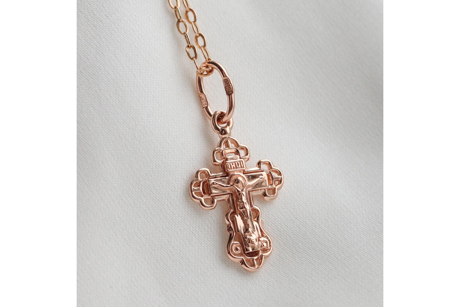 Металл: Золото, цвет: Красный , проба: 585. Вставки: без вставок. Крест православный нательный из красного золота 585 пробы бренда NEWGOLD. Крест подвеска кулон подходит для подростков, девушек, женщине, парню, мужчине, сыну.