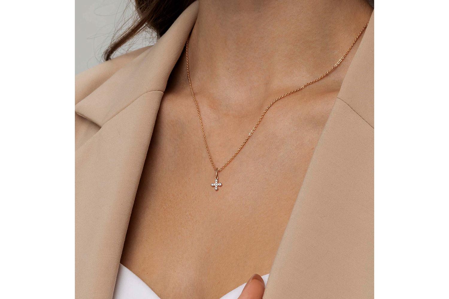 Мастера компании NEWGOLD, приложив всё свое мастерство и искусство, создали для Вас на нашем собственном производстве Крест из красного золота с 9 фианитами.
