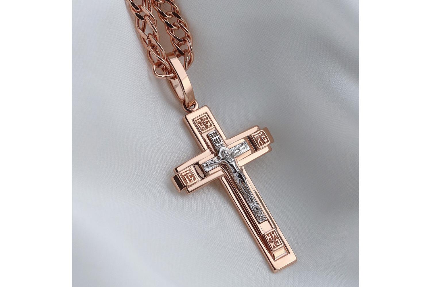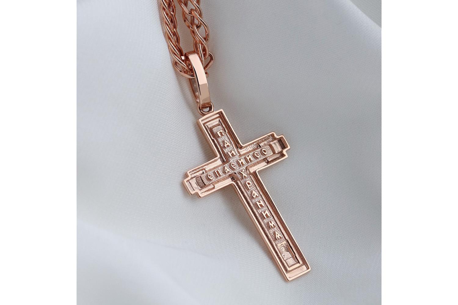 Мастера компании NEWGOLD, приложив всё свое мастерство и искусство, создали для Вас на нашем собственном производстве Крест из красного золота без вставок.