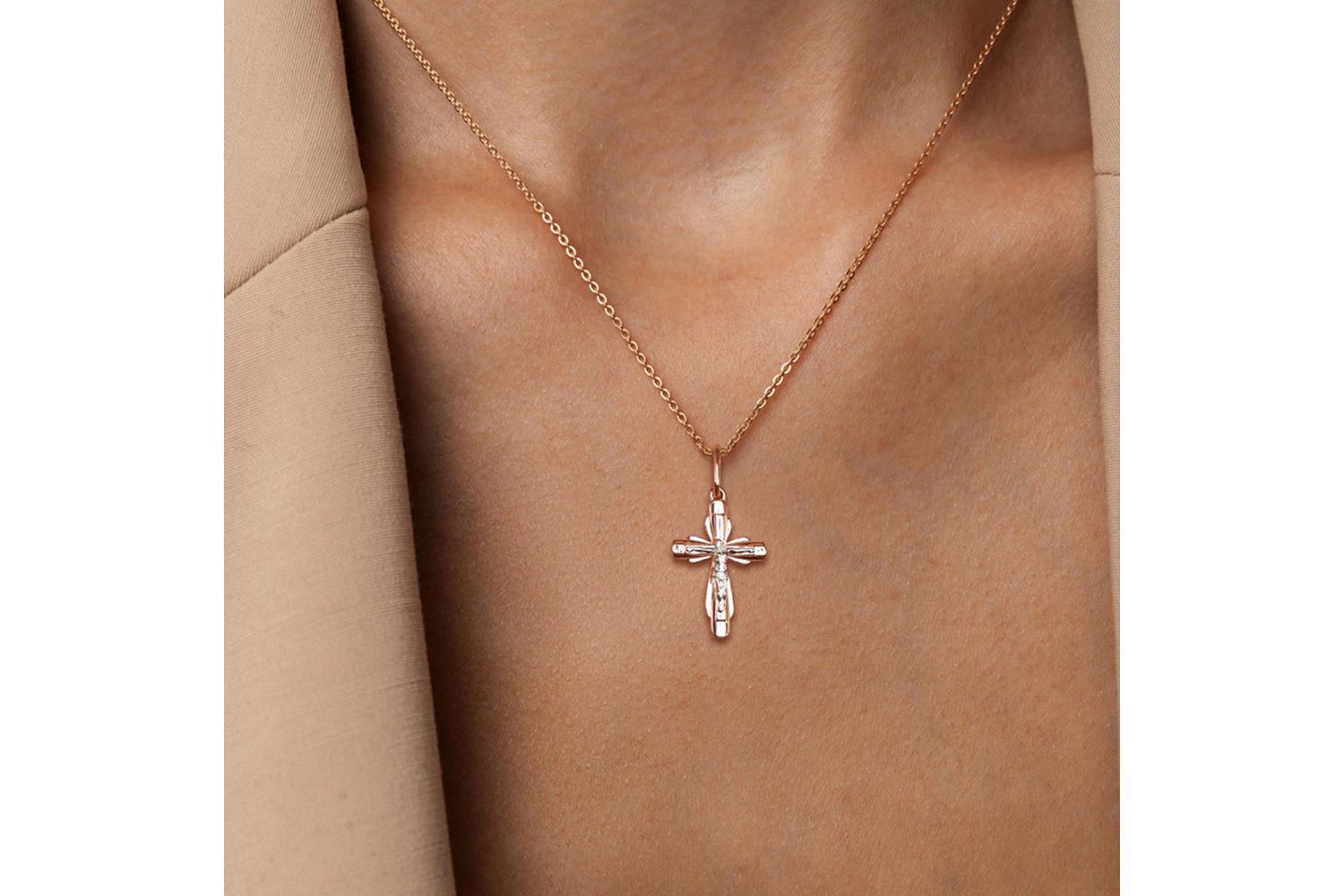 Подвеска с крестиком на шею женский из комбинированного ( красного и белого) золота акцентирует внимание на индивидуальности и вкусе обладательницы. Для мужчин доступен мужской вариант — крестик мужской на шею, который можно носить с цепочкой и шнурками. Крестик золотой для девочки добавит нежности и утончённости, а также станет символическим аксессуаром на многие случаи жизни.