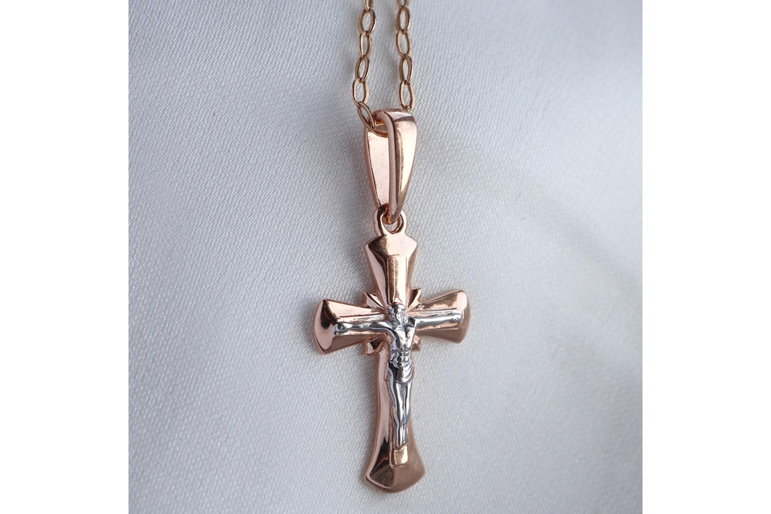 Подвеска с крестиком на шею женский из комбинированного ( красного и белого) золота акцентирует внимание на индивидуальности и вкусе обладательницы. Для мужчин доступен мужской вариант — крестик мужской на шею, который можно носить с цепочкой и шнурками. Крестик золотой для девочки добавит нежности и утончённости, а также станет символическим аксессуаром на многие случаи жизни.
