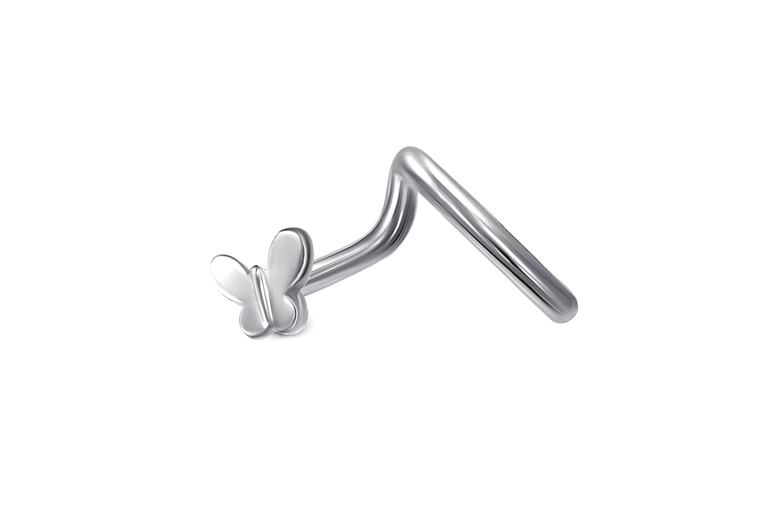 Мастера компании NEWGOLD, приложив всё свое мастерство и искусство, создали для Вас на нашем собственном производстве Пирсинг в нос Бабочка из белого золота без вставок.