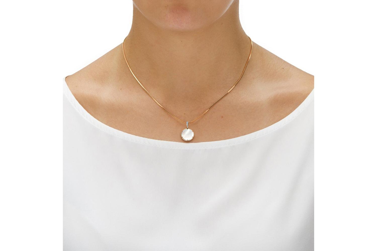 Мастера компании NEWGOLD, приложив всё свое мастерство и искусство, создали для Вас на нашем собственном производстве Подвеска из красного золота с перламутром и 3 фианитами.