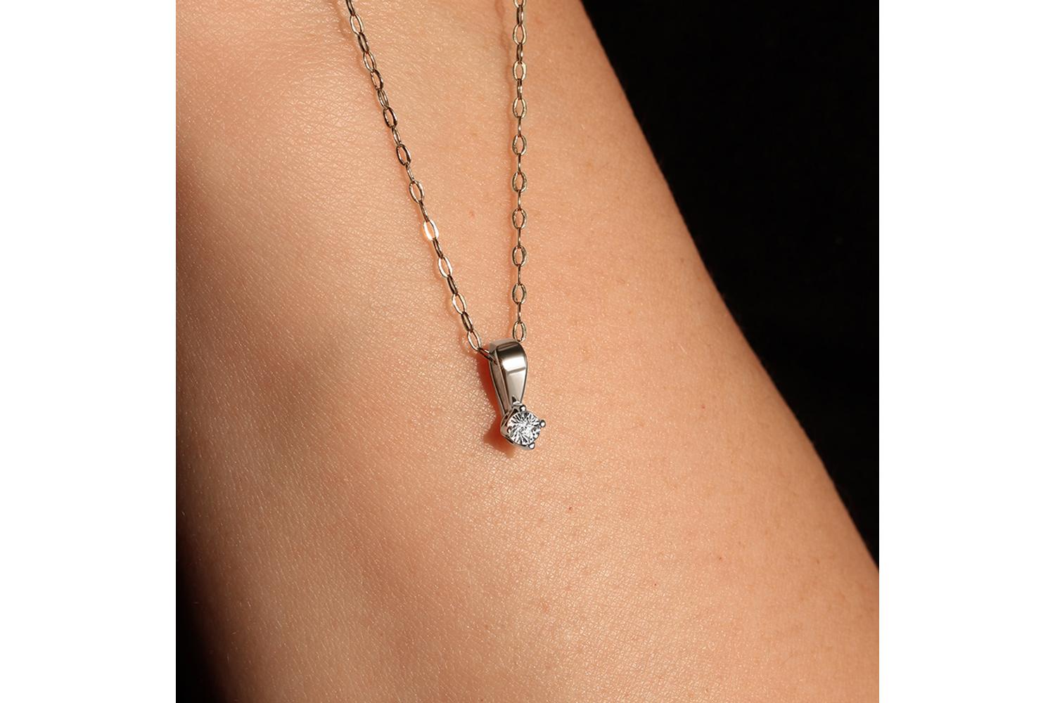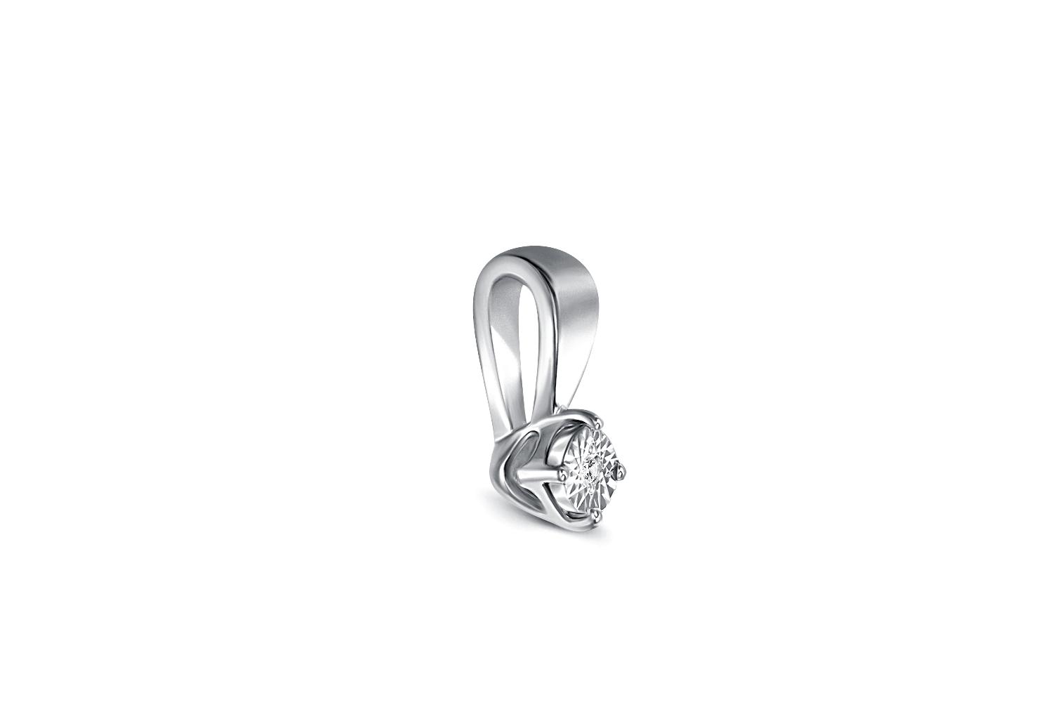 Изящная подвеска из белого золота с природным бриллиантом, выполненная в минималистичном стиле, притягивает взгляд своей элегантной простотой. Центральный элемент - бриллиант круглой огранки, надежно закрепленный нашими ювелирами. Металл имеет характерный холодный оттенок белого золота, который подчеркивает чистоту и блеск драгоценного камня. Форма подвески плавная, с изящным изгибом подвесного ушка, что позволяет легко подвесить украшение на цепочку.