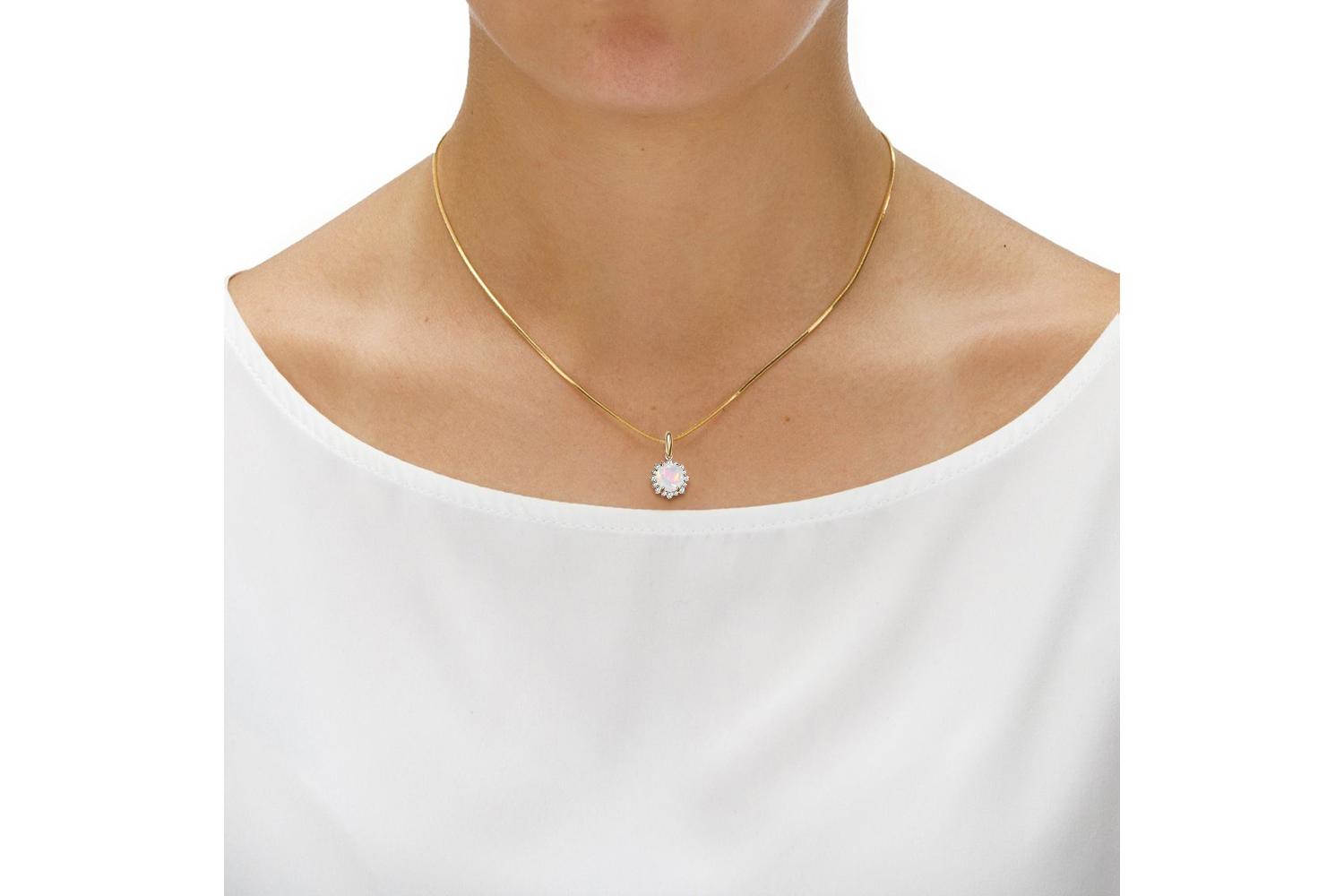 Мастера компании NEWGOLD, приложив всё свое мастерство и искусство, создали для Вас на нашем собственном производстве Подвеска Цветок из жёлтого золота с опалом и 16 фианитами.