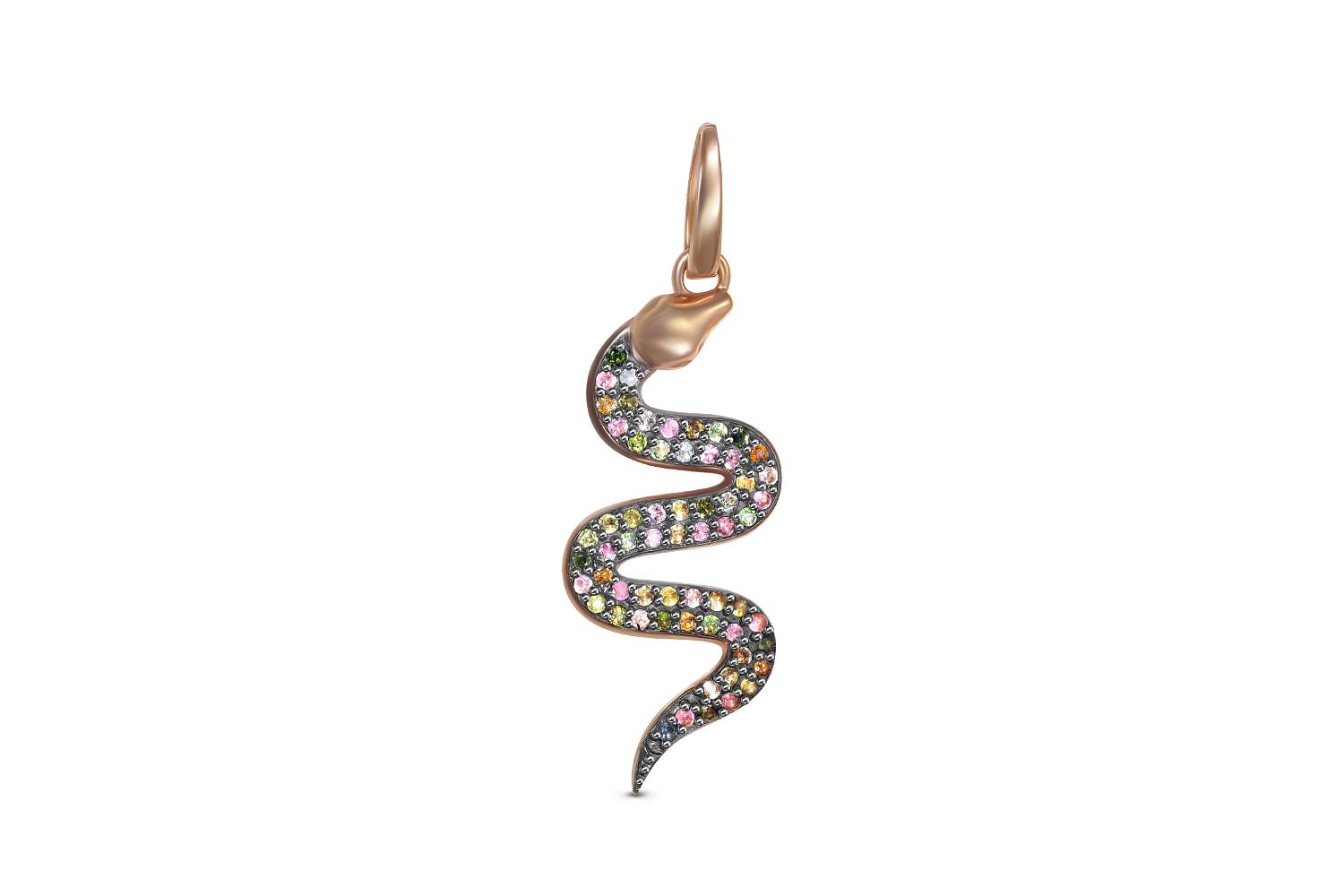 Мастера компании NEWGOLD, приложив всё свое мастерство и искусство, создали для Вас на нашем собственном производстве Подвеска Змея из красного золота с 61 турмалинами.