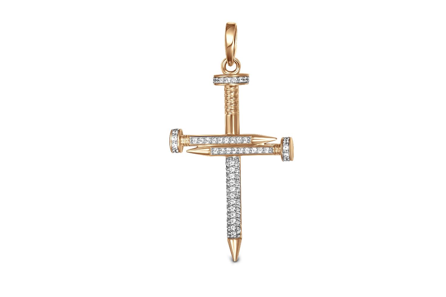 Мастера компании NEWGOLD, приложив всё свое мастерство и искусство, создали для Вас на нашем собственном производстве Подвеска Гвоздь из красного золота с 88 бриллиантами.