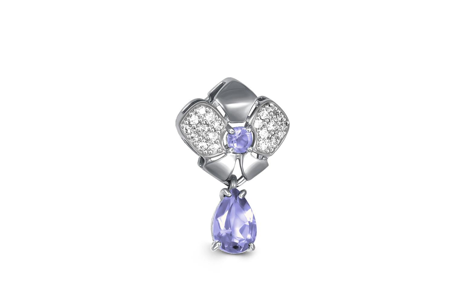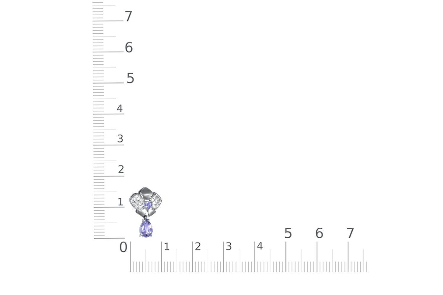 Фианит Танзанит, количество 1 шт., огранка груша, размер 6ˣ4 ; Фианит Танзанит, количество 1 шт., огранка круг, размер 2,5 мм ; Фианит б/цв, количество 20 шт., огранка круг, размер 0,9 мм