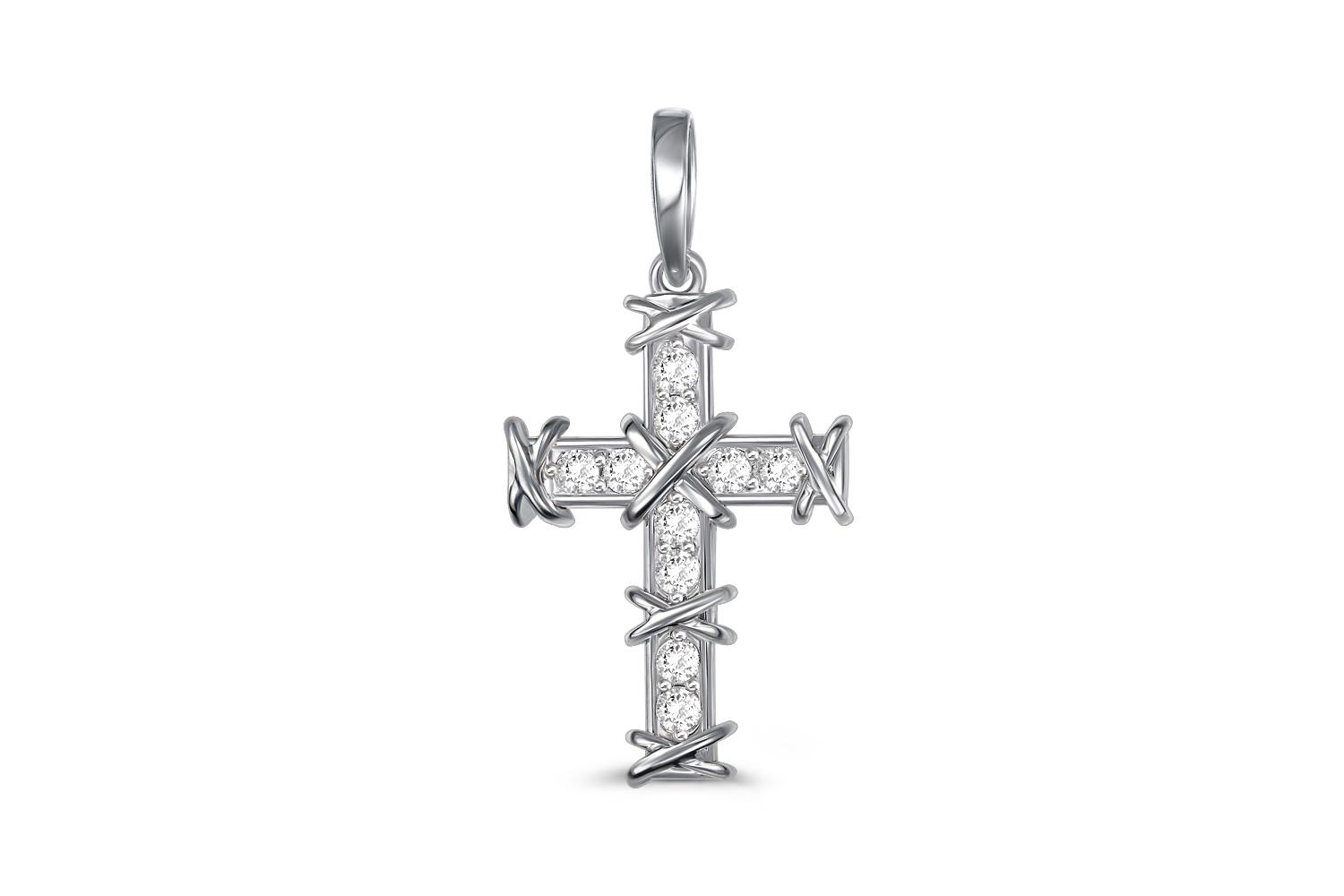 Мастера компании NEWGOLD, приложив всё свое мастерство и искусство, создали для Вас на нашем собственном производстве Подвеска Крест из белого золота с 10 бриллиантами.