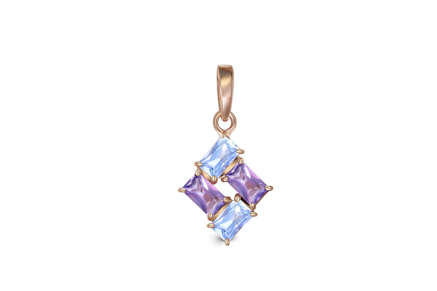 Мастера компании NEWGOLD, приложив всё свое мастерство и искусство, создали для Вас на нашем собственном производстве Подвеска из красного золота с 2 аметистами и 2 топазами sky.