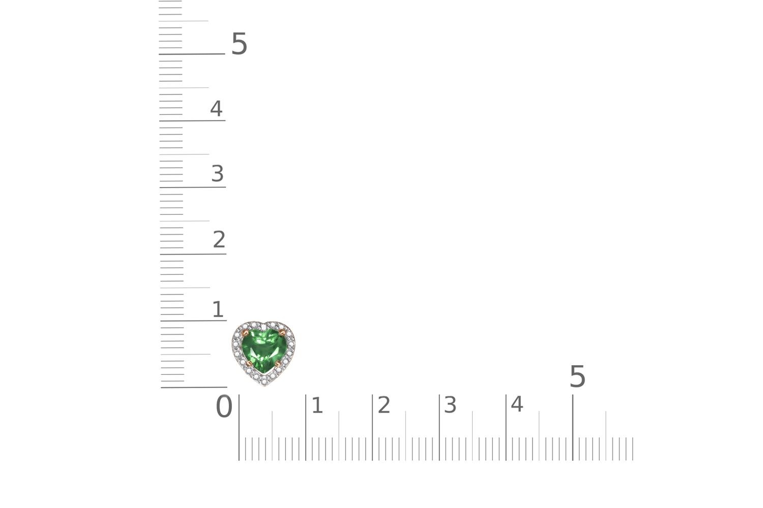 Изумруд Гт искусственный, количество 1 шт., огранка сердце, размер 6ˣ6 ; Бриллиант, количество 18 шт., огранка Кр-17, размер 1 мм, цвет 2, чистота 2, вес 0,09 карат.
