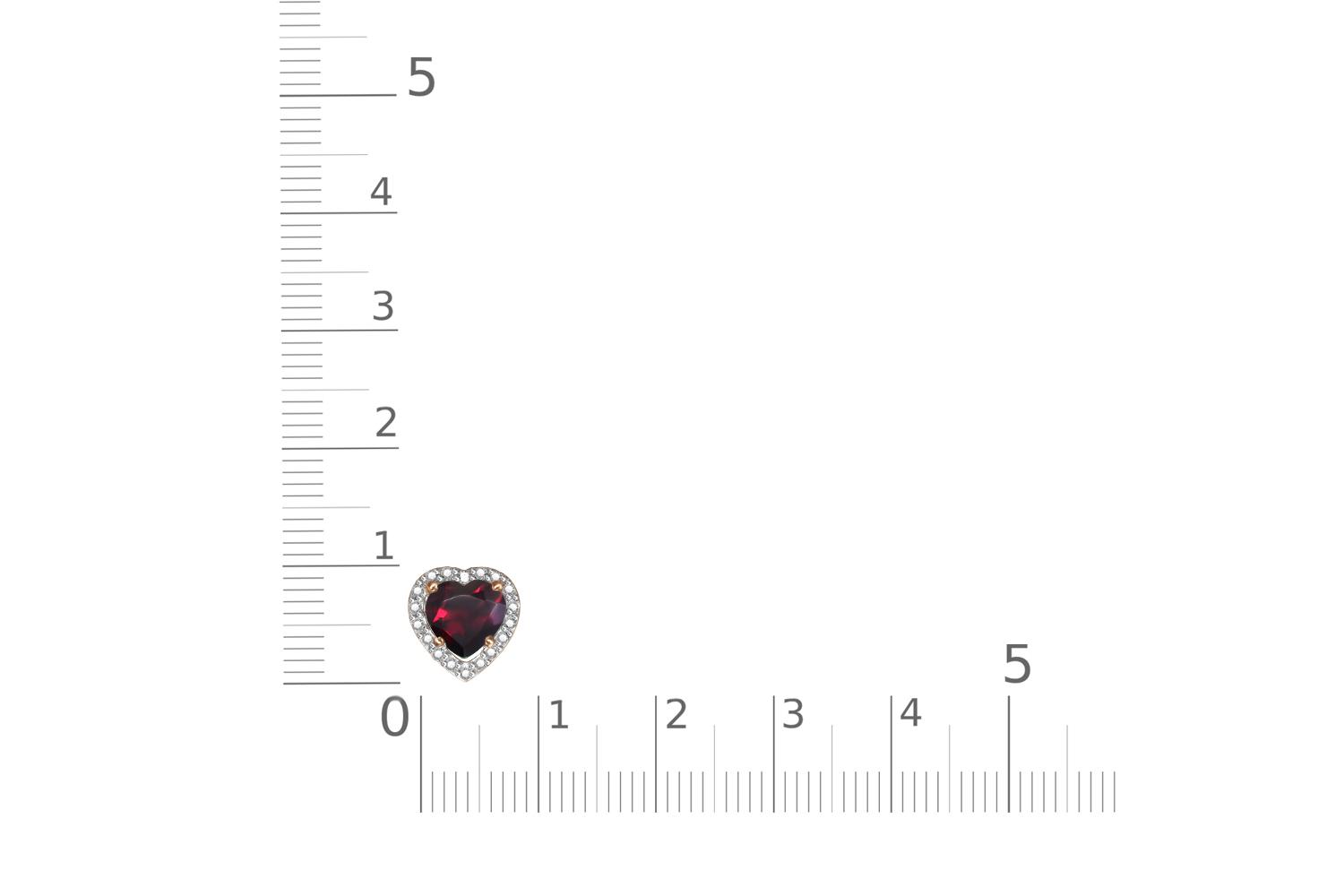 Гранат натуральный, количество 1 шт., огранка сердце, размер 6ˣ6 ; Фианит б/цв, количество 18 шт., огранка круг, размер 1 мм