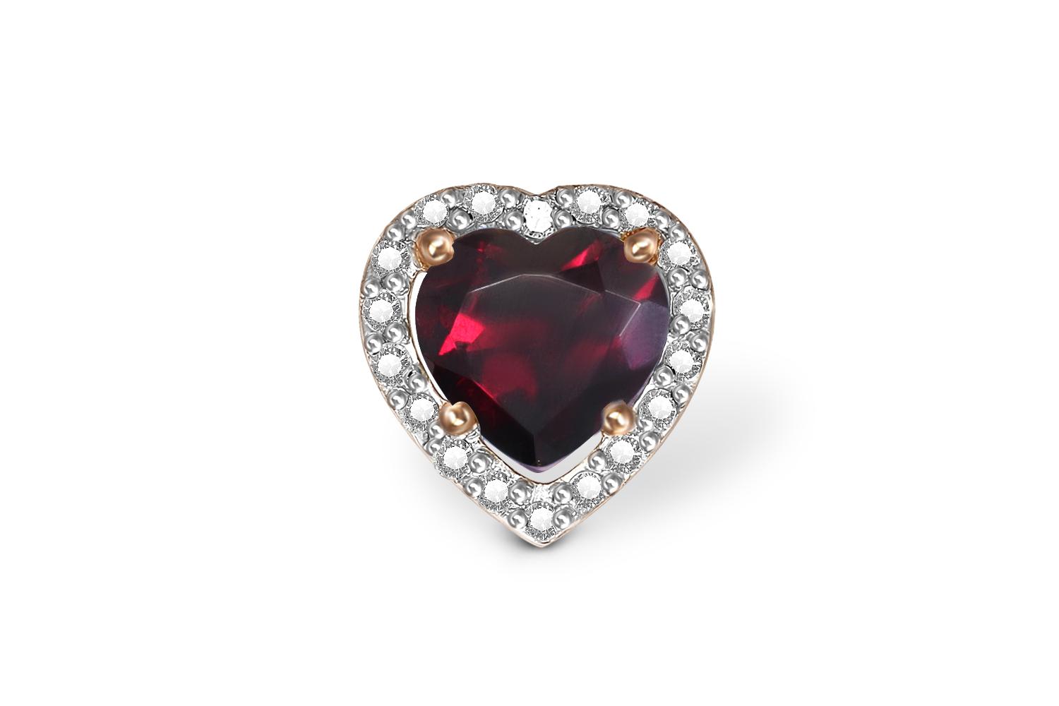 Закажите Подвеска Сердце из красного золота с гранатом и 18 фианитами с получением в Москве через курьерскую службу доставки напрямую с нашего производственного склада завода NEWGOLD!