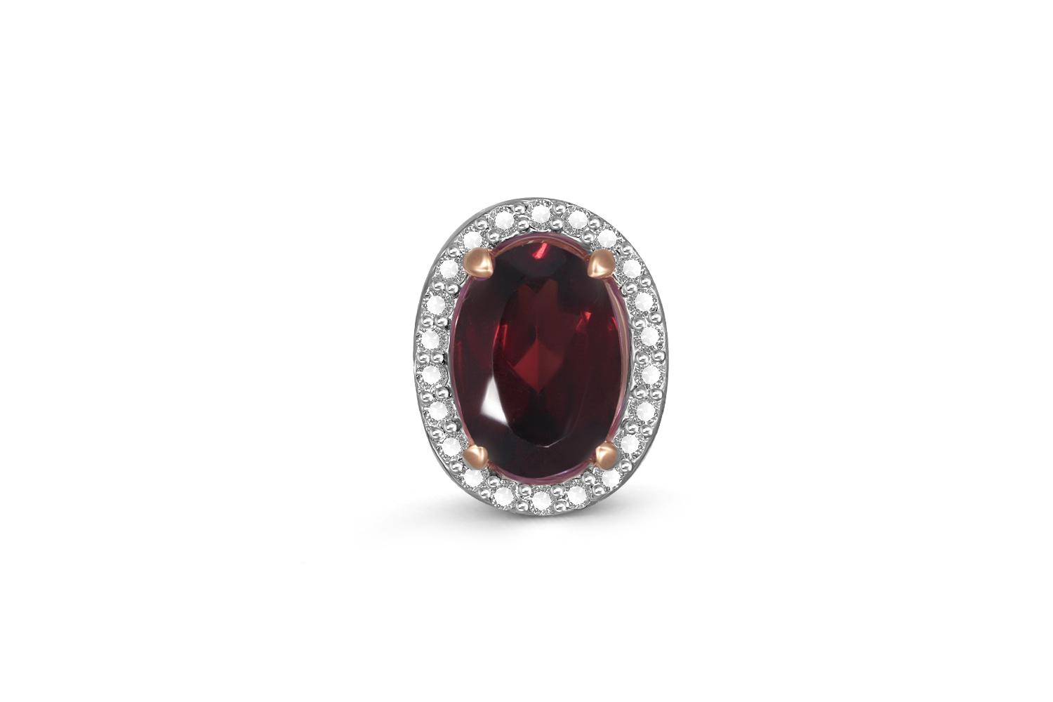 Гранат натуральный, количество 1 шт., огранка овал, размер 7ˣ5 ; Фианит б/цв, количество 22 шт., огранка круг, размер 0,9 мм