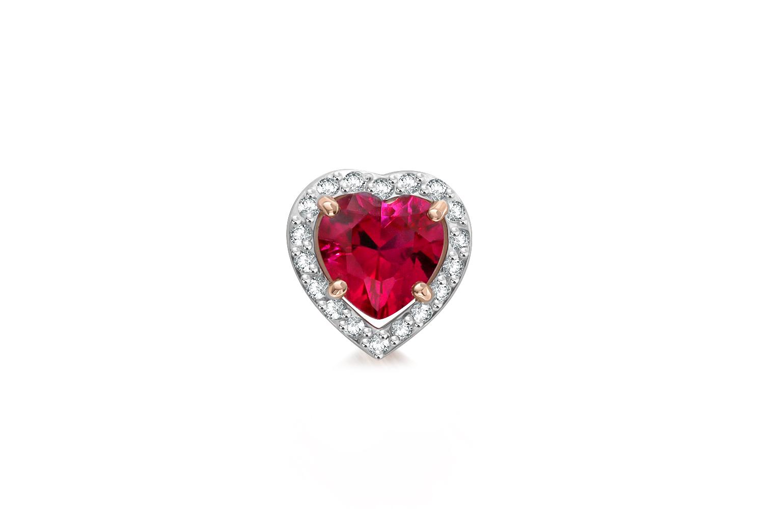 Металл: Золото, цвет: Красный , проба: 585. Вставки: Корунд рубин, количество 1 шт., огранка сердце, размер 6*6 ; Бриллиант, количество 18 шт., огранка Кр-17, размер 1 мм, цвет 2, чистота 2.