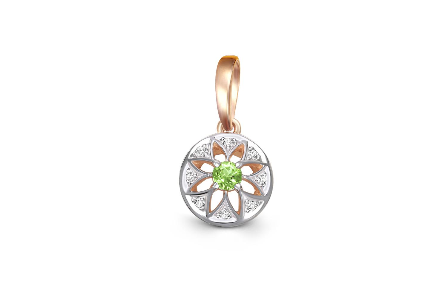 Мастера компании NEWGOLD, приложив всё свое мастерство и искусство, создали для Вас на нашем собственном производстве Подвеска Цветок из красного золота с хризолитом и 8 фианитами.
