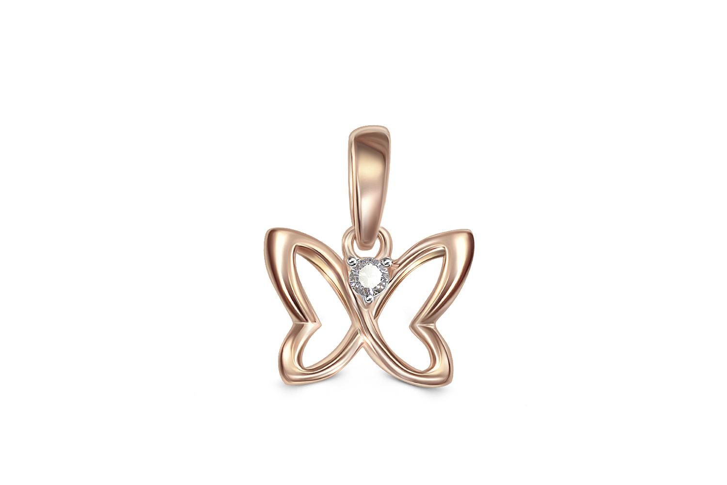 Мастера компании NEWGOLD, приложив всё свое мастерство и искусство, создали для Вас на нашем собственном производстве Подвеска Бабочка из красного золота с фианитом.