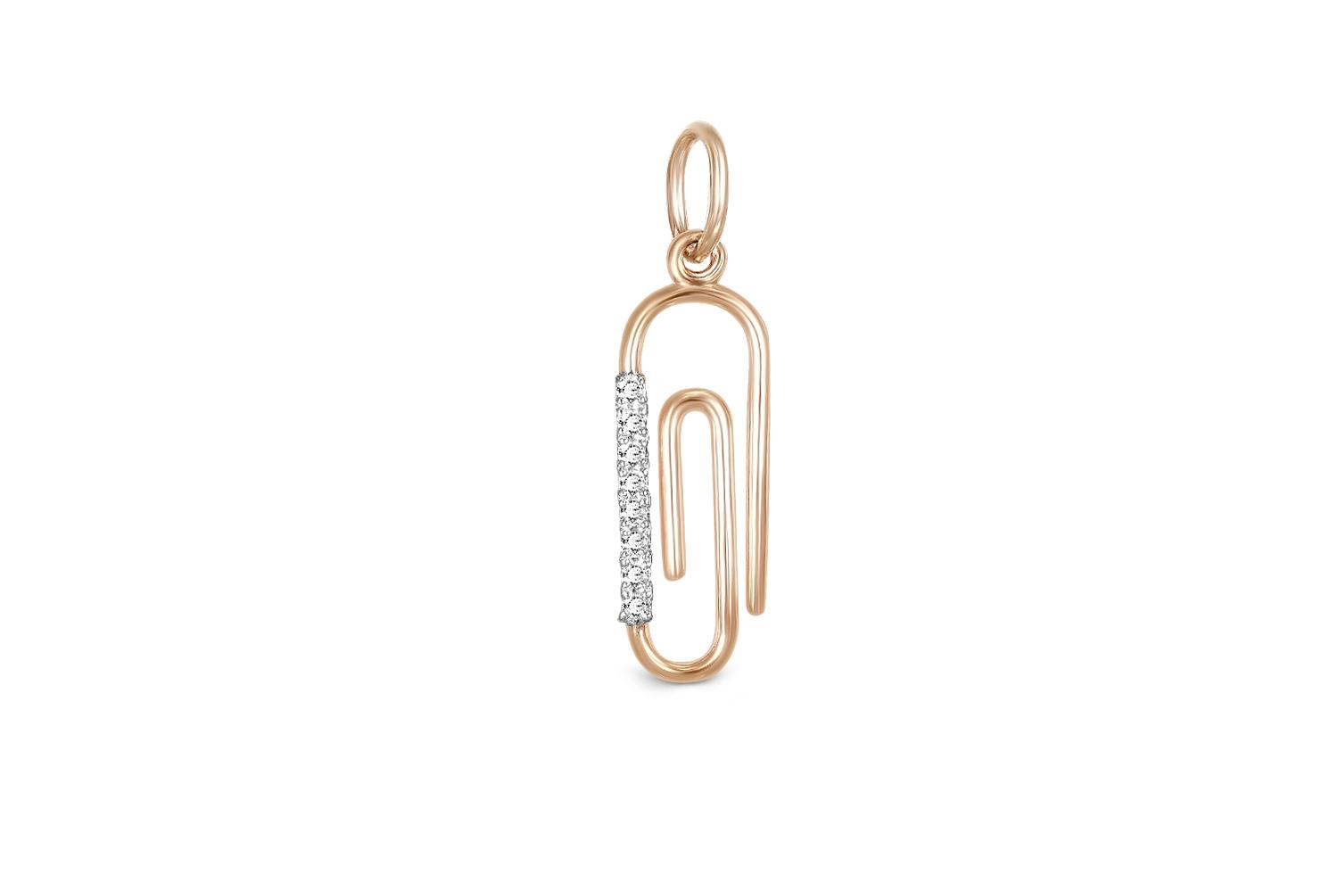 Мастера компании NEWGOLD, приложив всё свое мастерство и искусство, создали для Вас на нашем собственном производстве Подвеска Скрепка из красного золота с 8 бриллиантами.