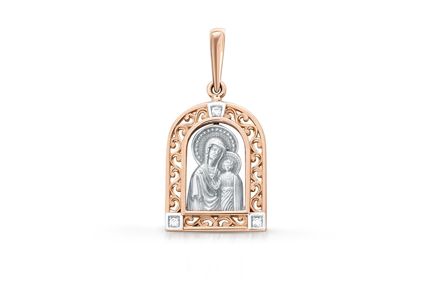 Мастера компании NEWGOLD, приложив всё свое мастерство и искусство, создали для Вас на нашем собственном производстве Иконка из красного золота с 3 фианитами.