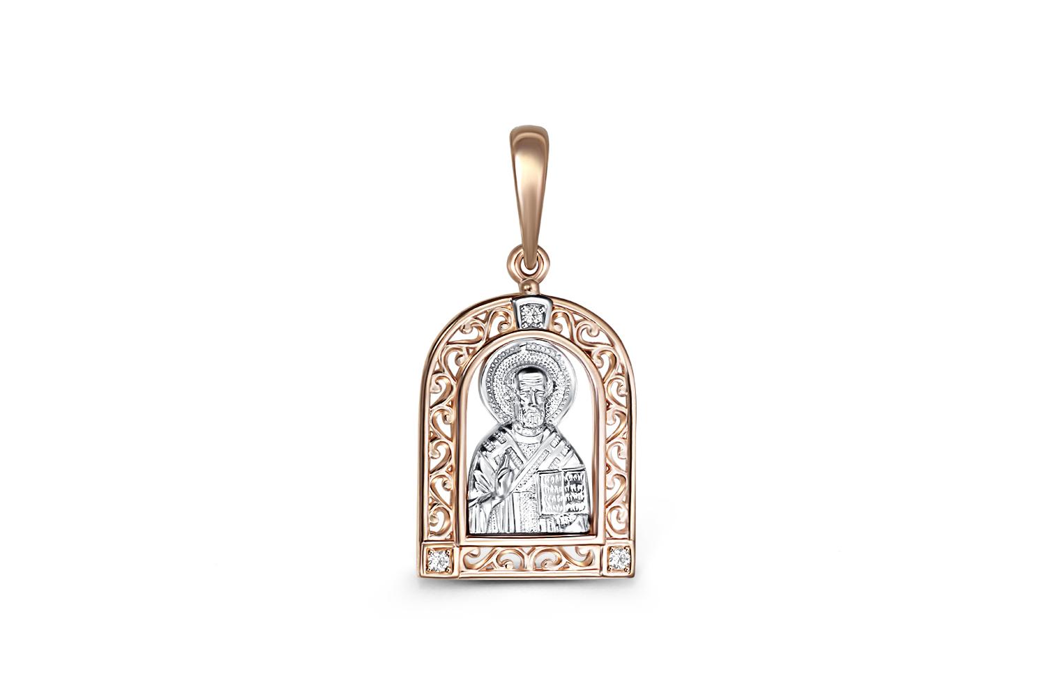 Мастера компании NEWGOLD, приложив всё свое мастерство и искусство, создали для Вас на нашем собственном производстве Иконка из красного золота с 3 фианитами.