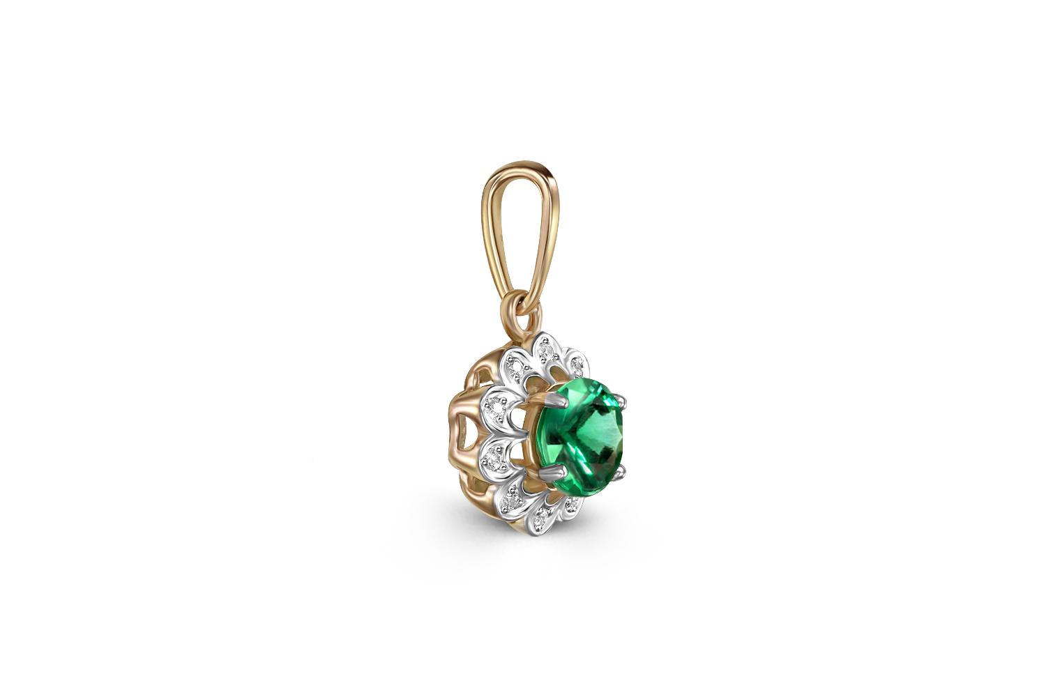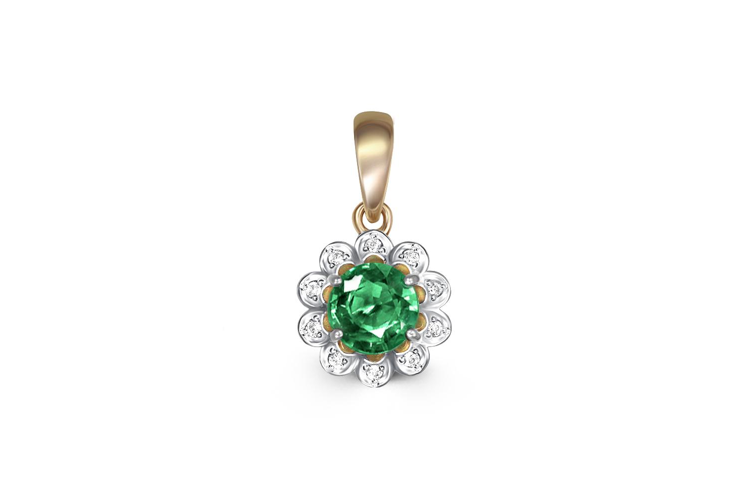 Мастера компании NEWGOLD, приложив всё свое мастерство и искусство, создали для Вас на нашем собственном производстве Подвеска Цветок из жёлтого золота с изумрудом и 10 бриллиантами.