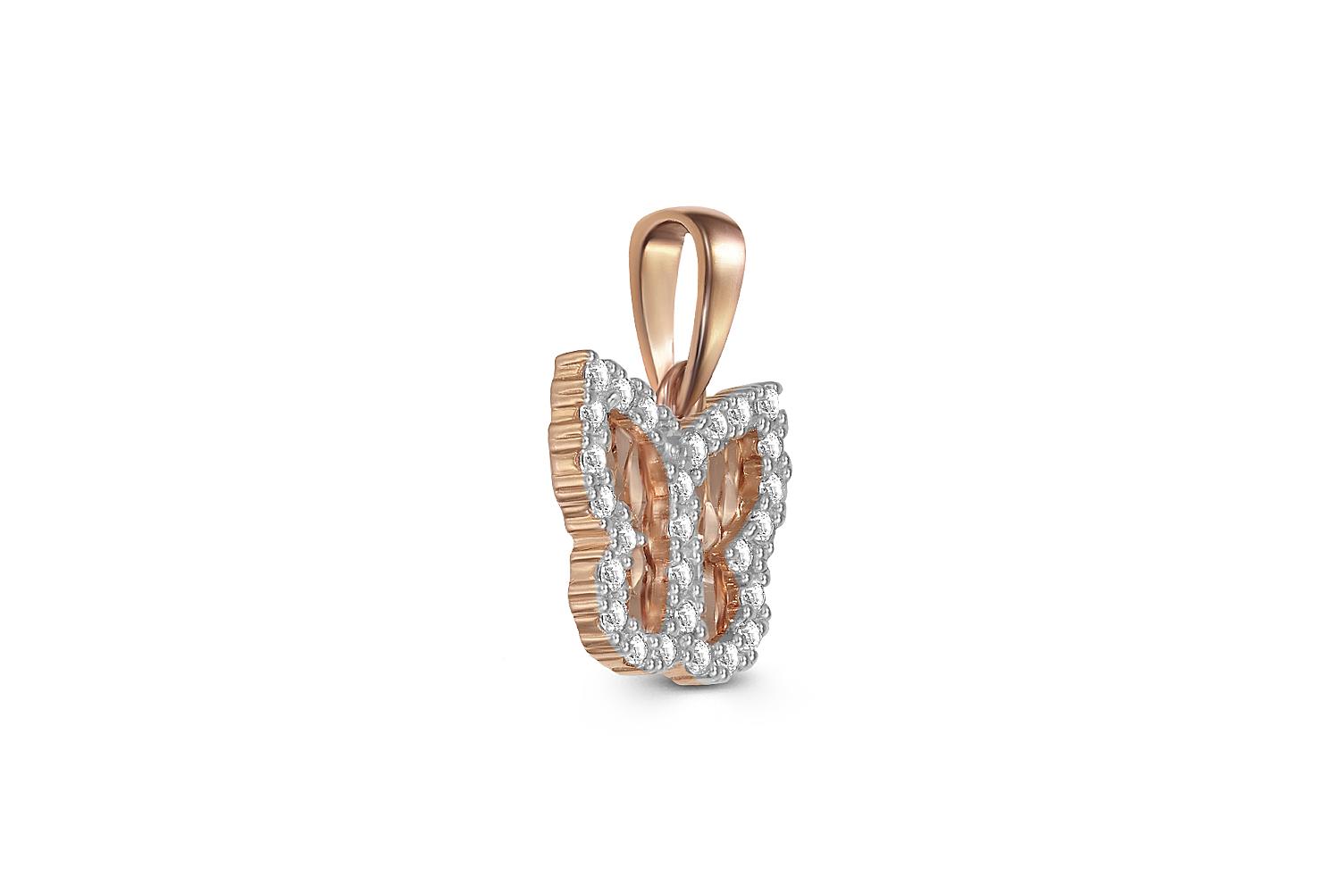 Закажите Подвеска Бабочка из красного золота с 28 фианитами с получением в Москве через курьерскую службу доставки напрямую с нашего производственного склада завода NEWGOLD!