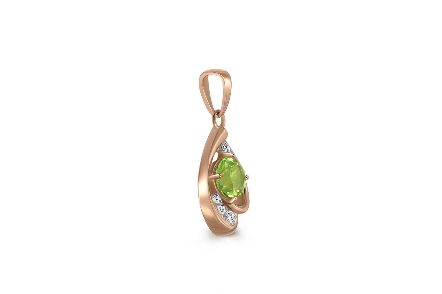 Мастера компании NEWGOLD, приложив всё свое мастерство и искусство, создали для Вас на нашем собственном производстве Подвеска из красного золота с хризолитом и 6 фианитами.