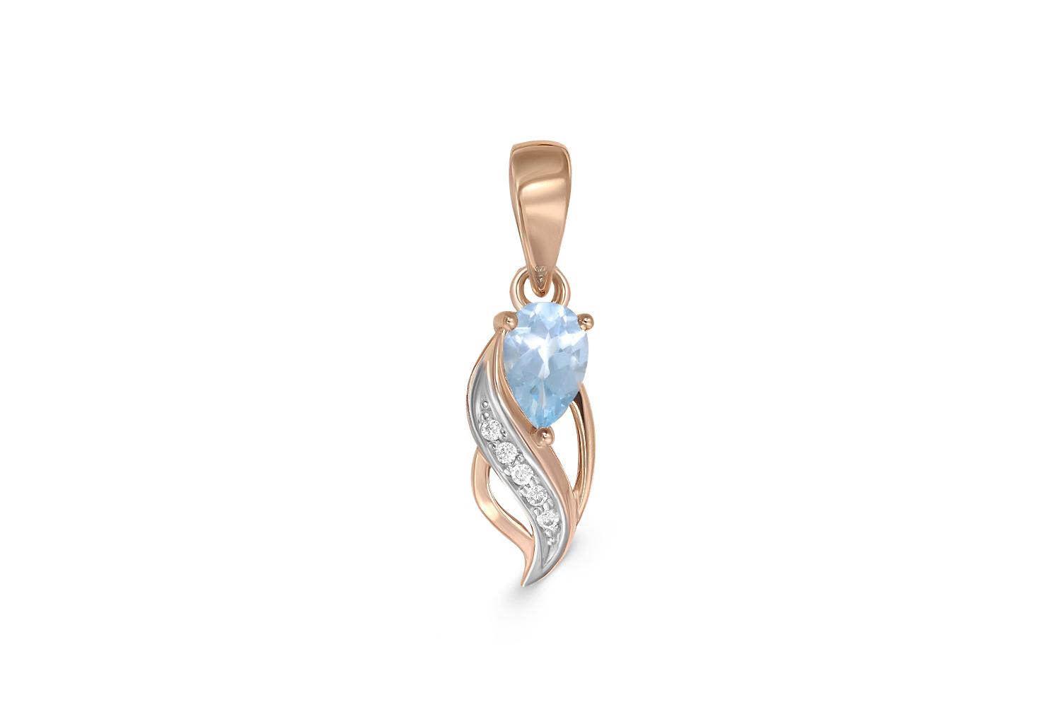 Мастера компании NEWGOLD, приложив всё свое мастерство и искусство, создали для Вас на нашем собственном производстве Подвеска из красного золота с топазом sky и 5 фианитами.