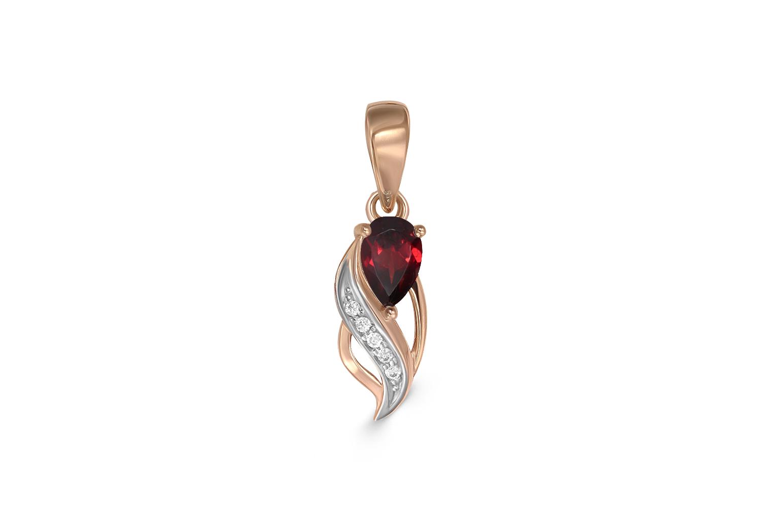 Мастера компании NEWGOLD, приложив всё свое мастерство и искусство, создали для Вас на нашем собственном производстве Подвеска из красного золота с гранатом и 5 фианитами.