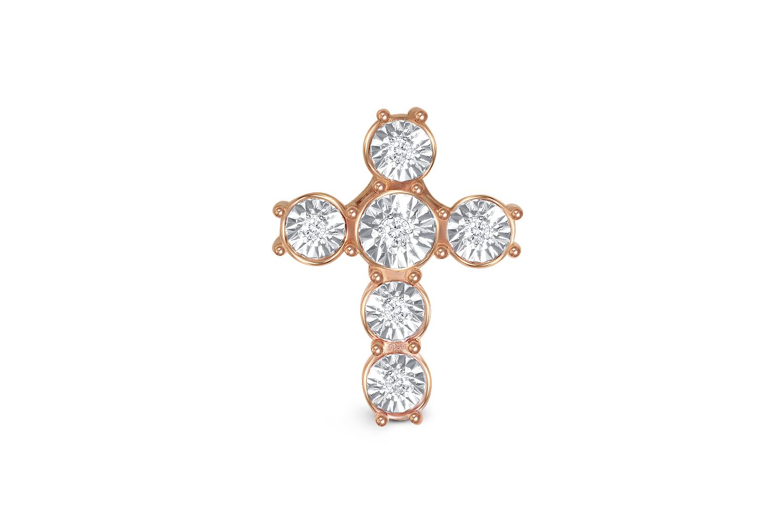 Мастера компании NEWGOLD, приложив всё свое мастерство и искусство, создали для Вас на нашем собственном производстве Подвеска Крест из красного золота с 6 бриллиантами.
