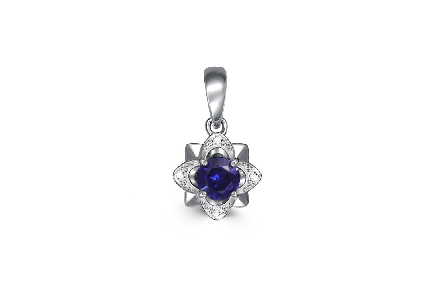 Мастера компании NEWGOLD, приложив всё свое мастерство и искусство, создали для Вас на нашем собственном производстве Подвеска Цветок из белого золота с корундом и 4 бриллиантами.